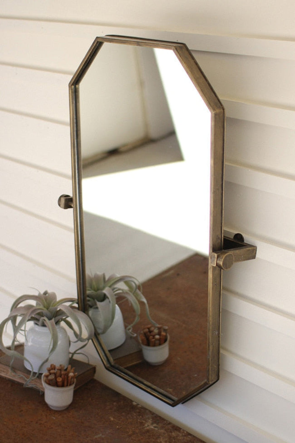 Wall Mirror, Geometric Adjustable Wall Mirror 35.5"H - Antique Brass Finish By Kalalou