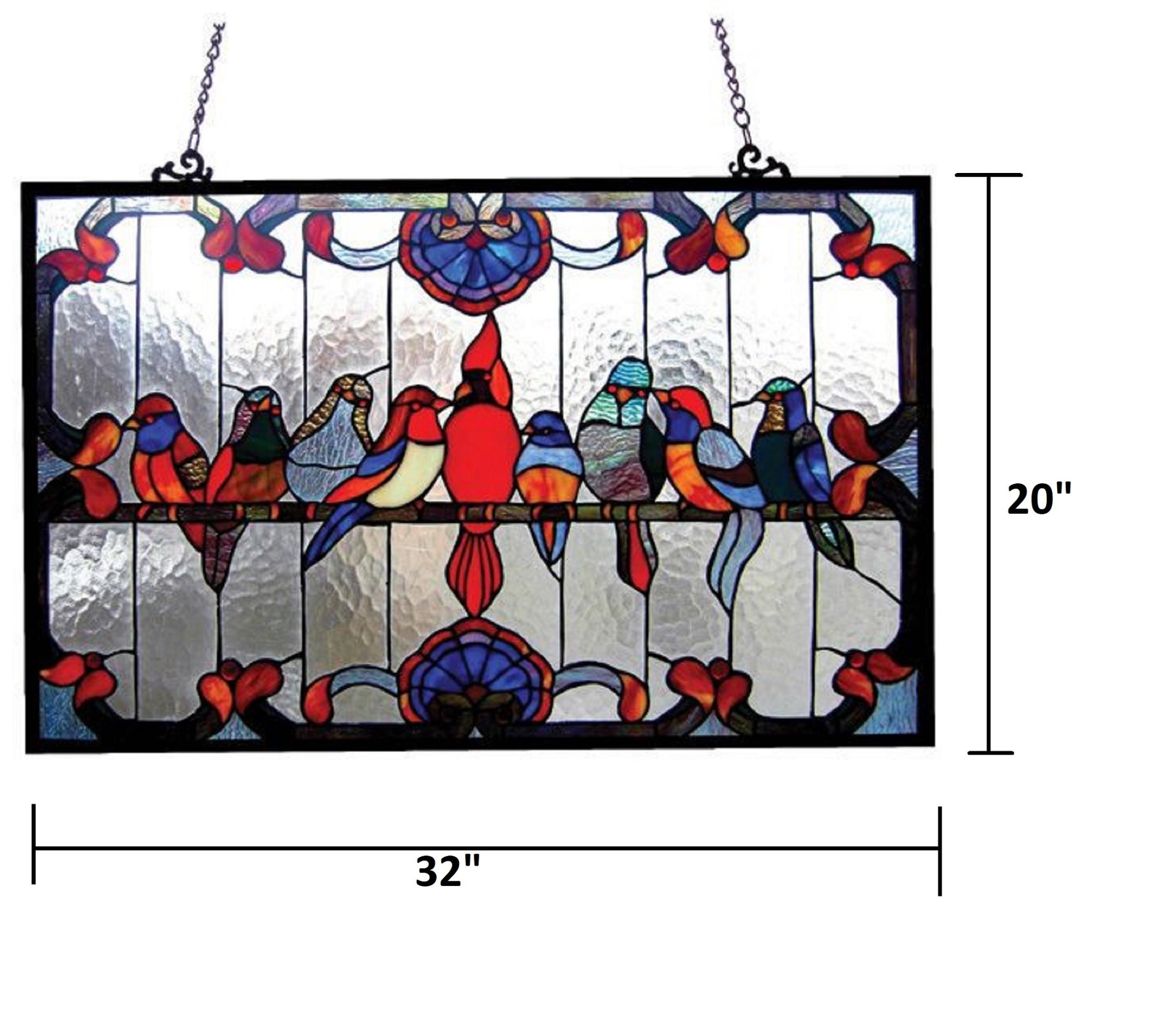 Chloe Lighting CH1P982RA32-GPN Tiffany-Glass Featuring Gathering Birds Window Panel 32x20