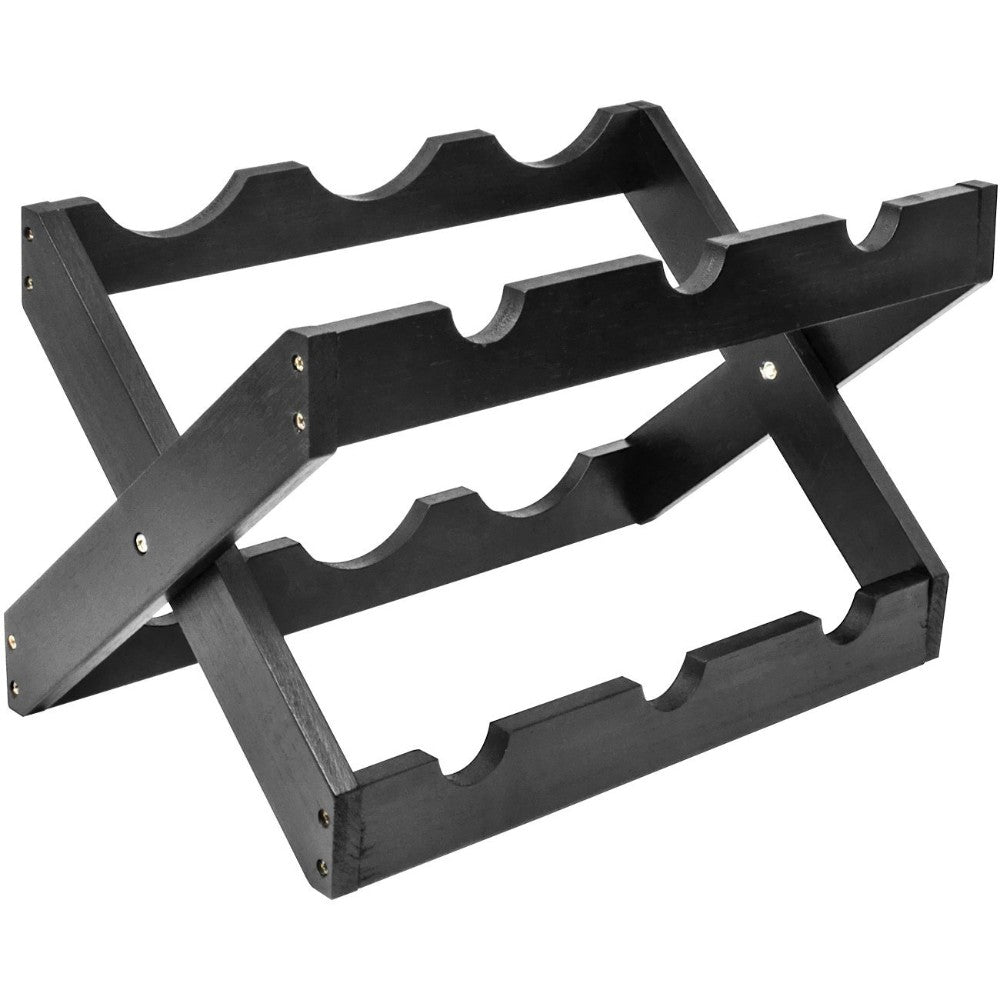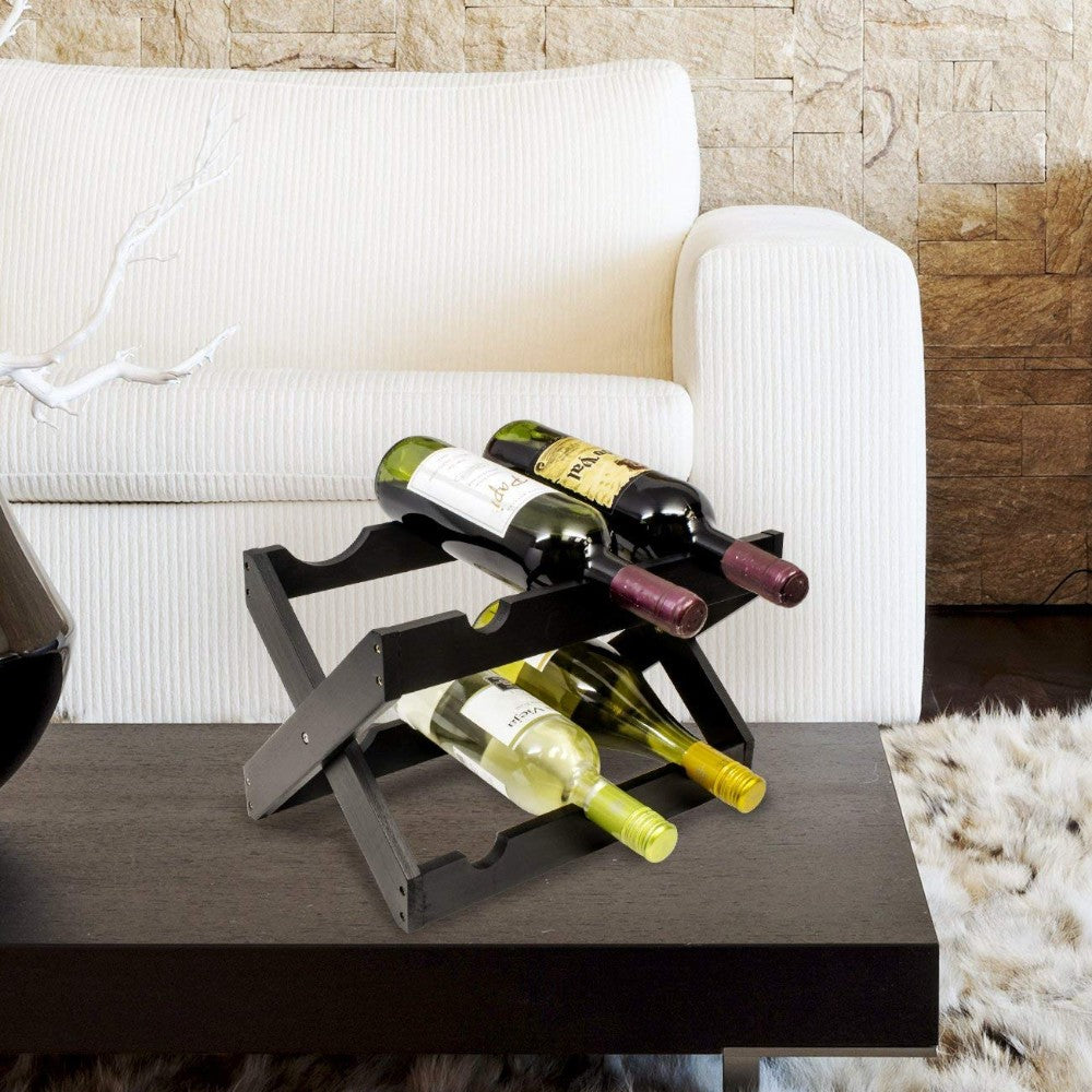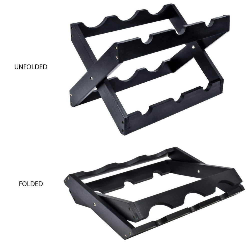 Benzara Bamboo Wood Foldable 6-Bottles Counter Top Wine Rack, Black