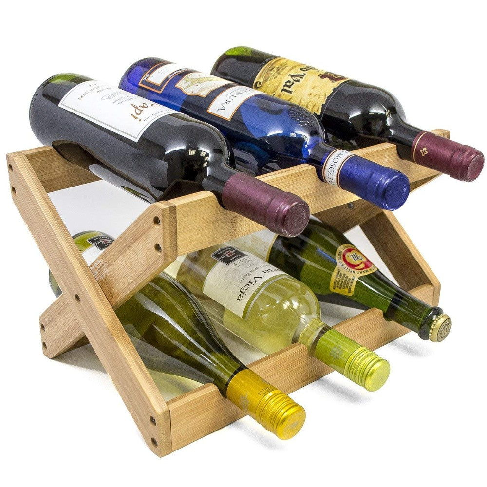 SKU - BZC555-XNH006Bamboo Wood Foldable 6-Bottles Counter Top Wine Rack Only at Uber Bazaar