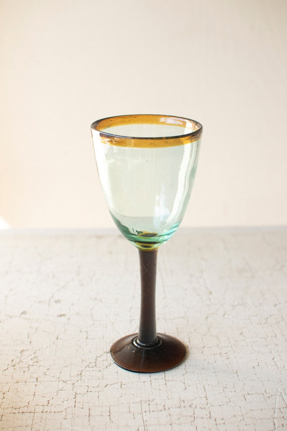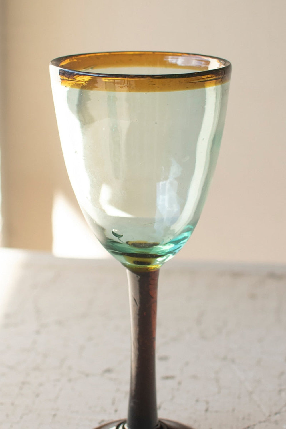 Recycled Glass Wine Stemware 11 oz, 9"H - Hand-Blown Brown Rim & Stem Accents (Set of 6) By Kalalou