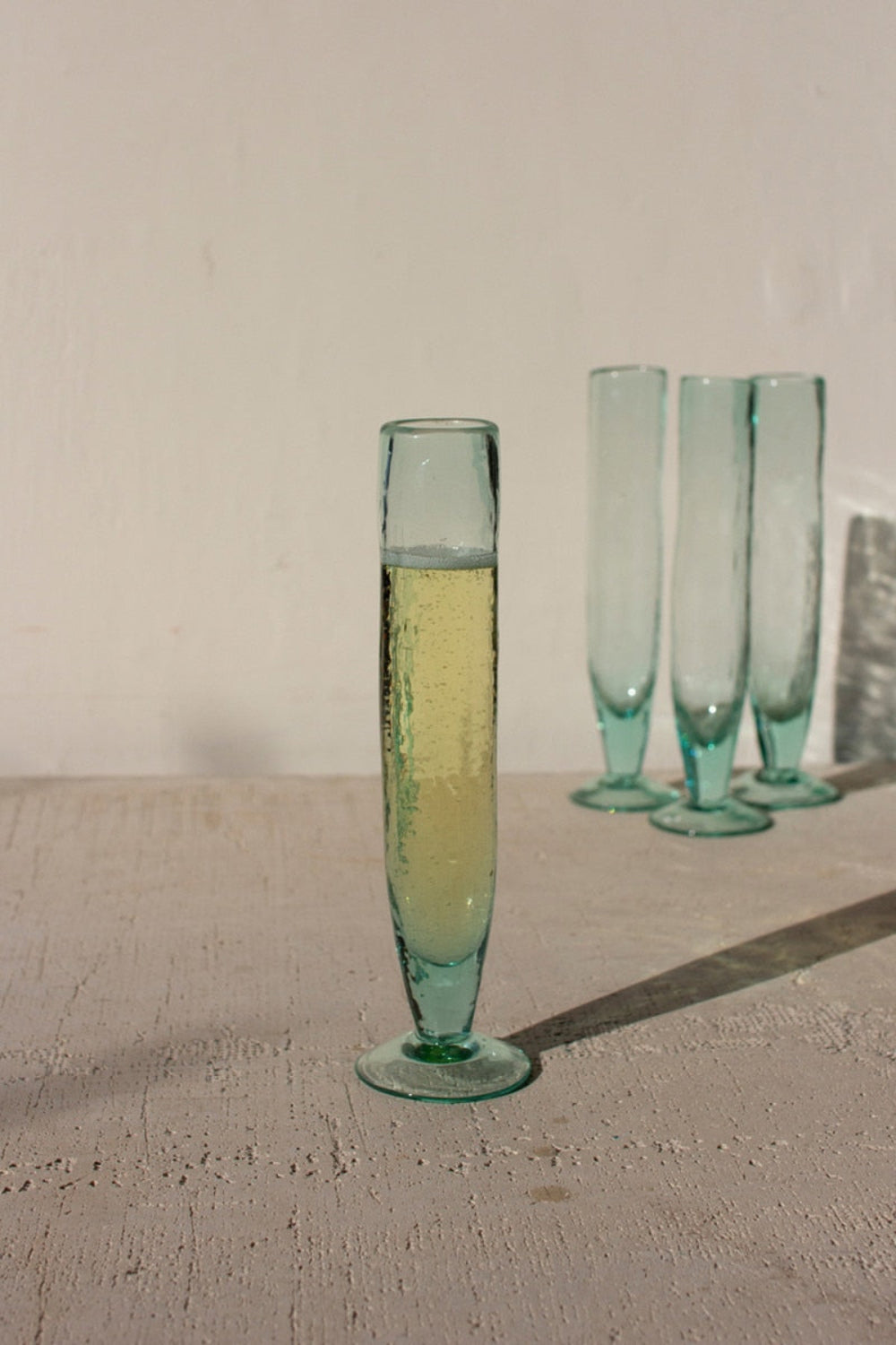 SKU - KAL-CRL5749- Hand-blown champagne flutes crafted from recycled Colombian glass