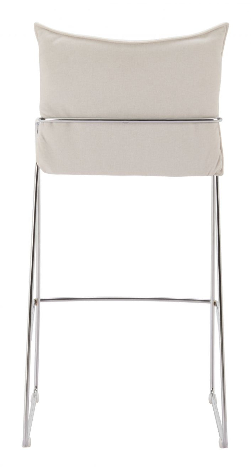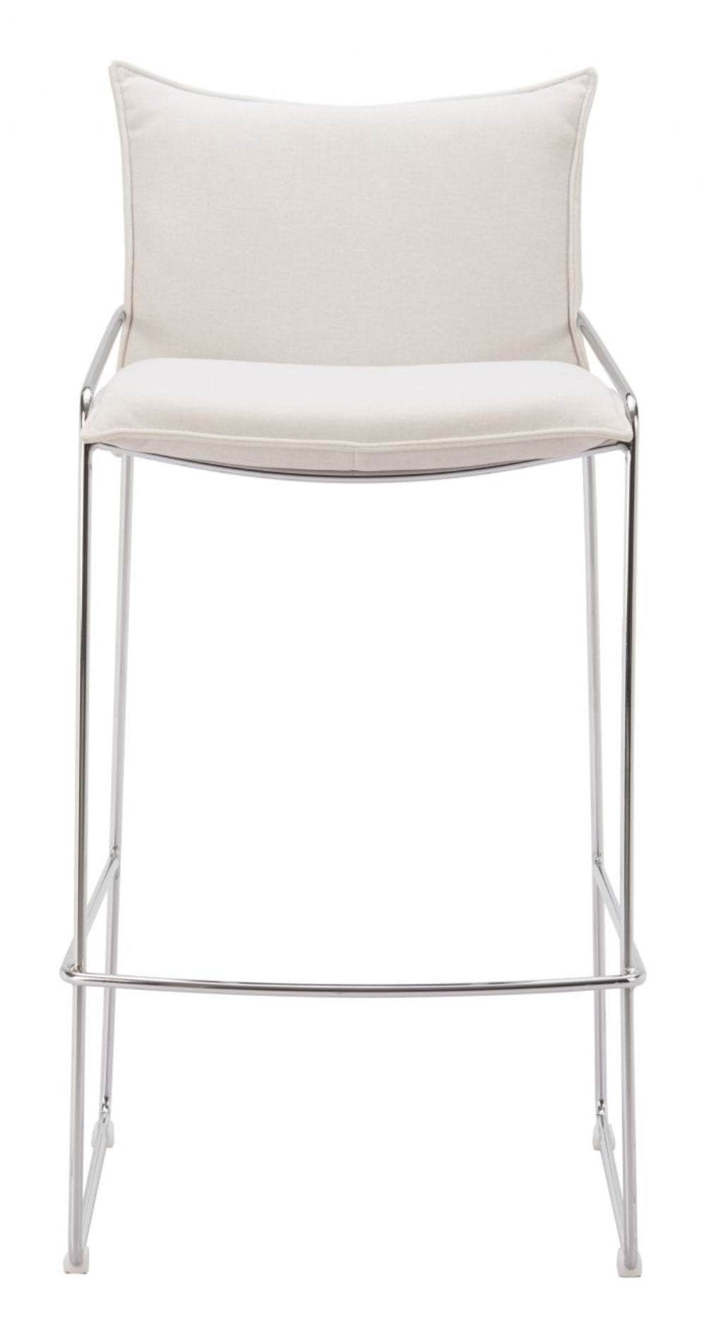 40.4" Barstool White Poly Linen Upholstered Seat with Armrests and Chrome Frame by Zuo Modern