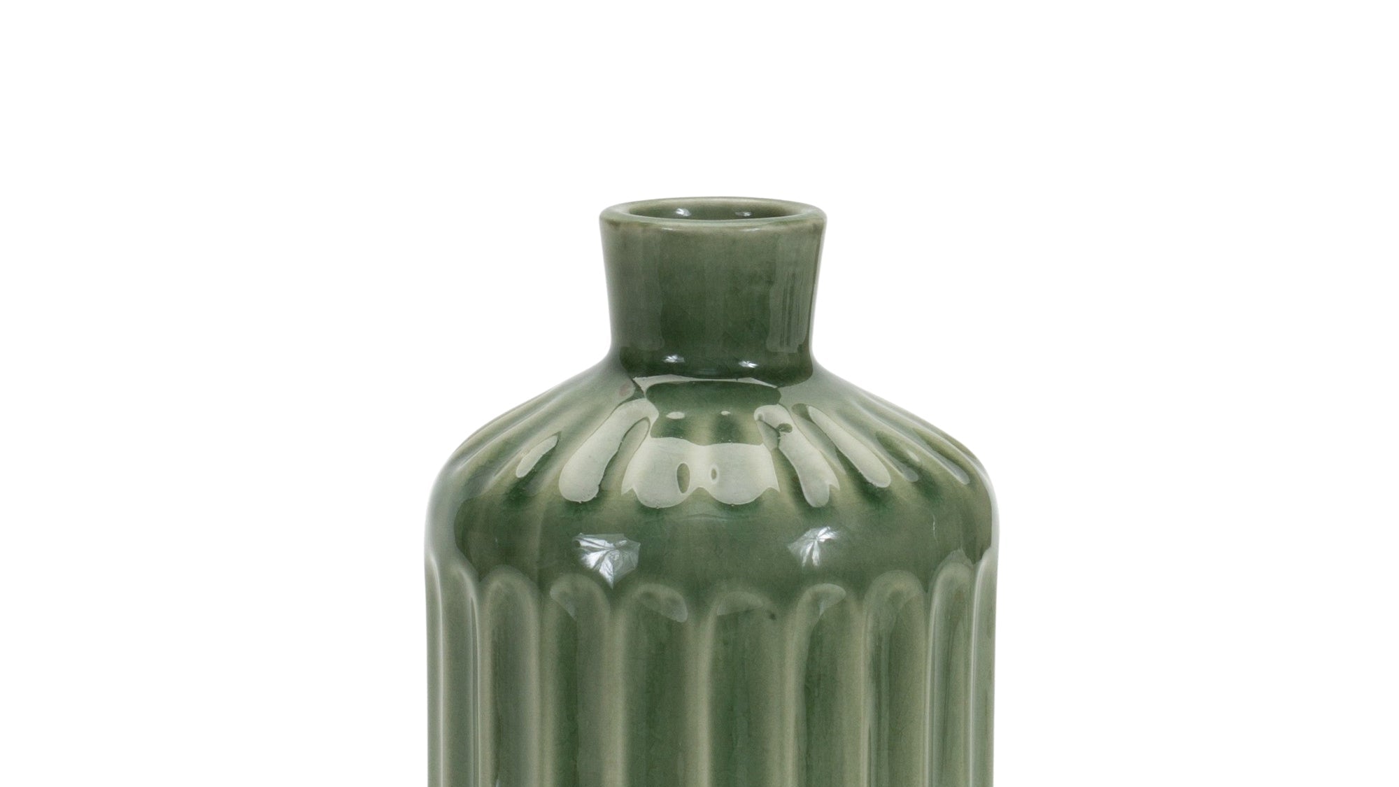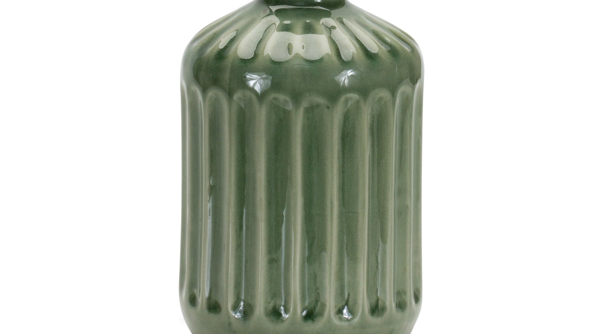 7.25"H Green Clay Vase – Ribbed Texture – Decorative Home Accent