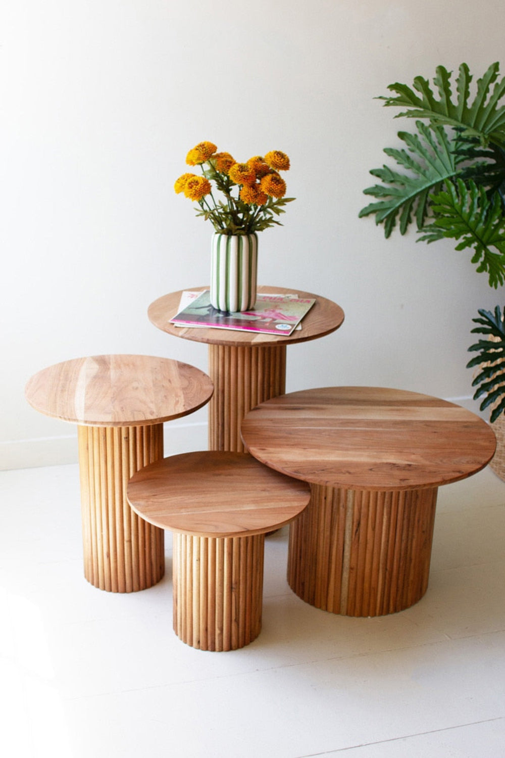 Acacia Wood Accent Tables with Tambour Bases – 24" Tall Set of 4 by Kalalou
