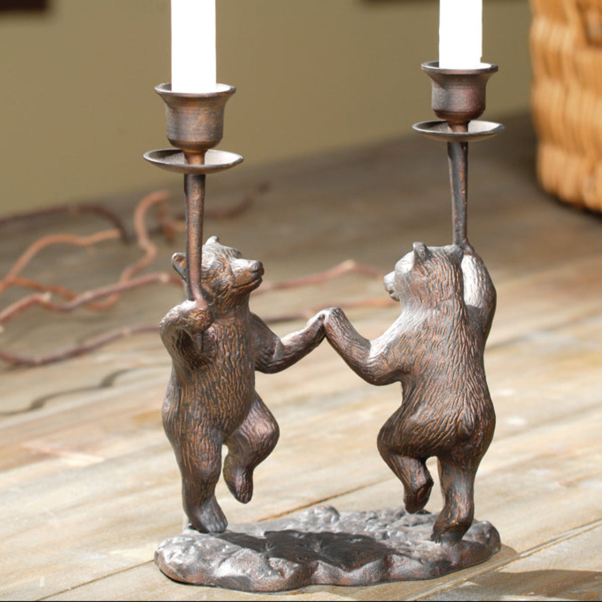 Aluminum Dancing Bears Candleholder Cabin Tabletop Accent by SPI