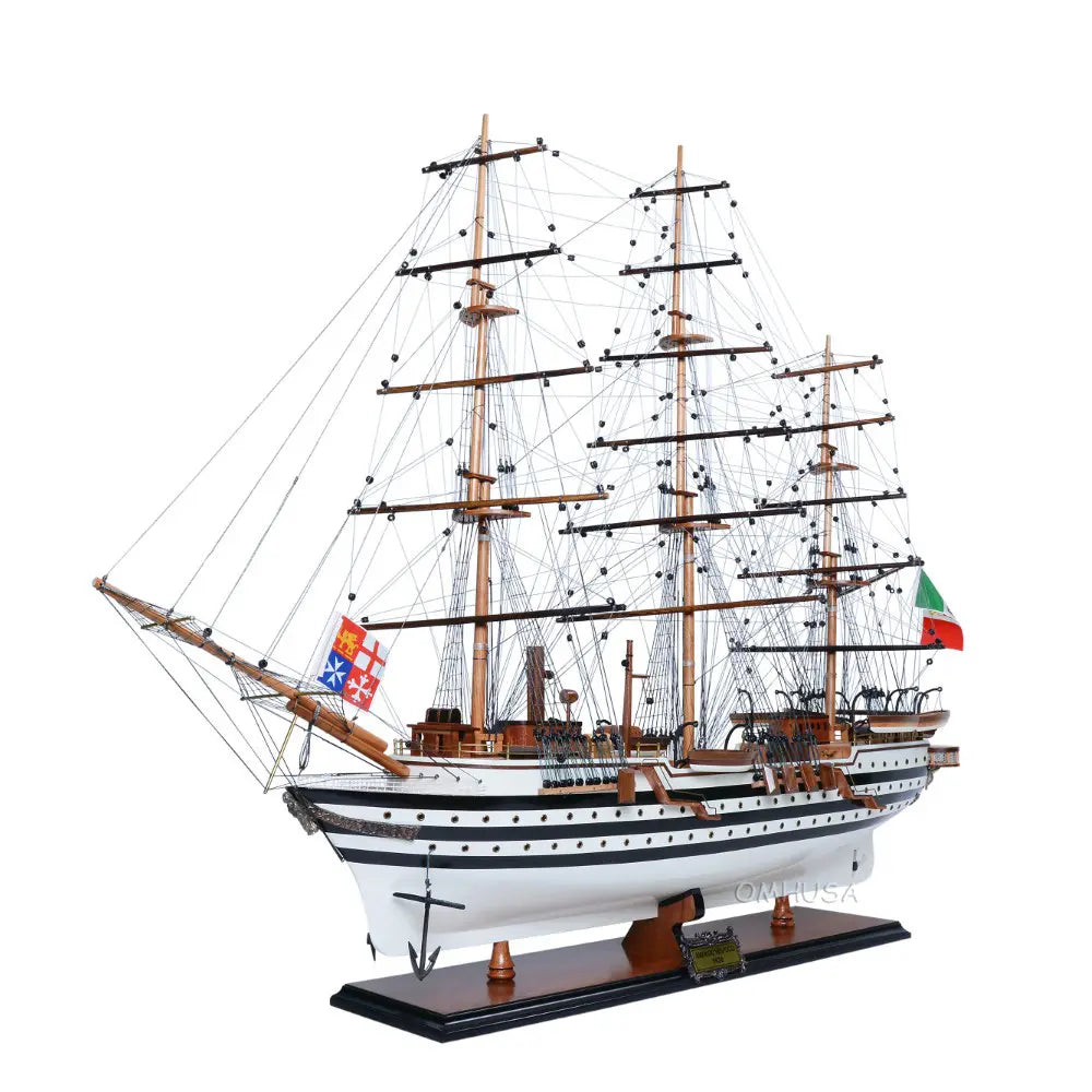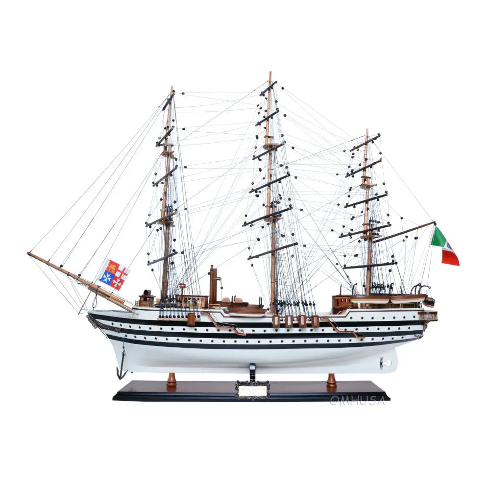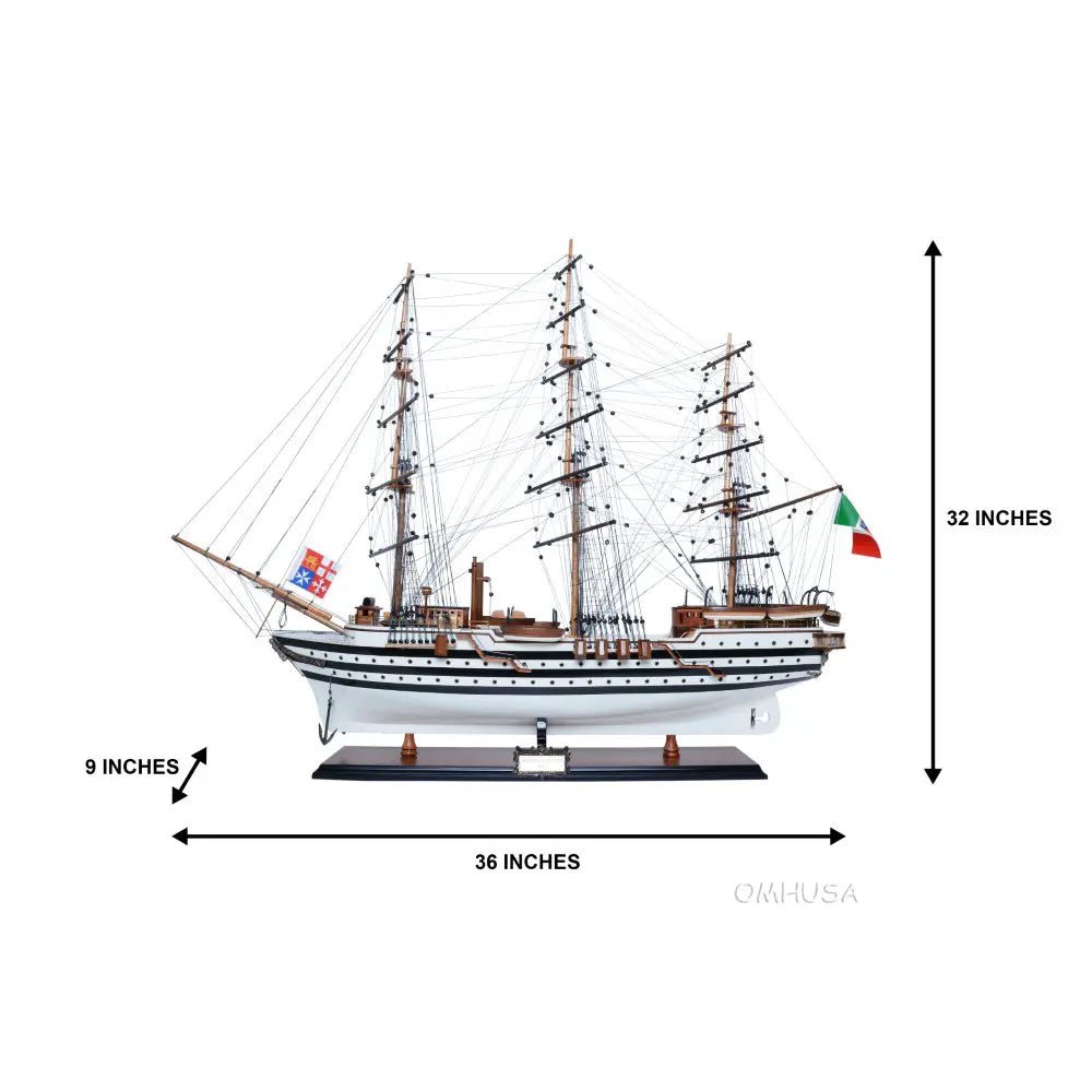 Amerigo Vespucci Model Ship – Handcrafted 36" Wood Replica, Painted Admiral Line By Old Modern Handicrafts