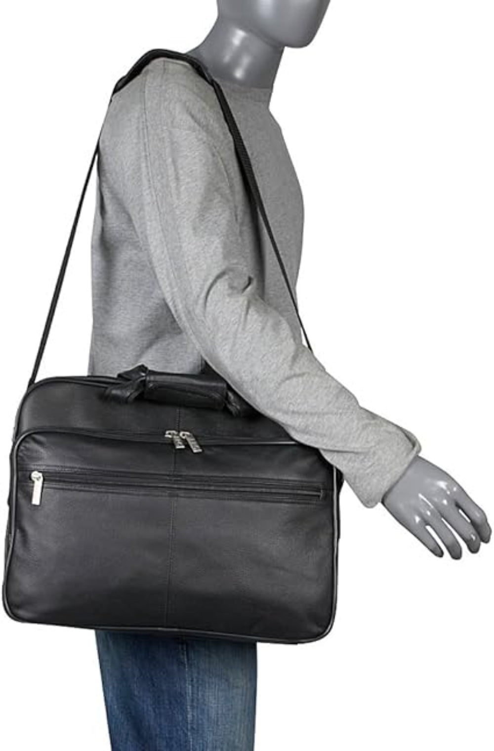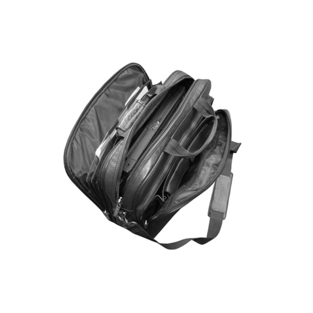 SKU - AML-48-0Black Leather Laptop Briefcase – Top Grain Cowhide, Padded Compartment, Dual Flap Pockets & Mesh Organizer, 16"