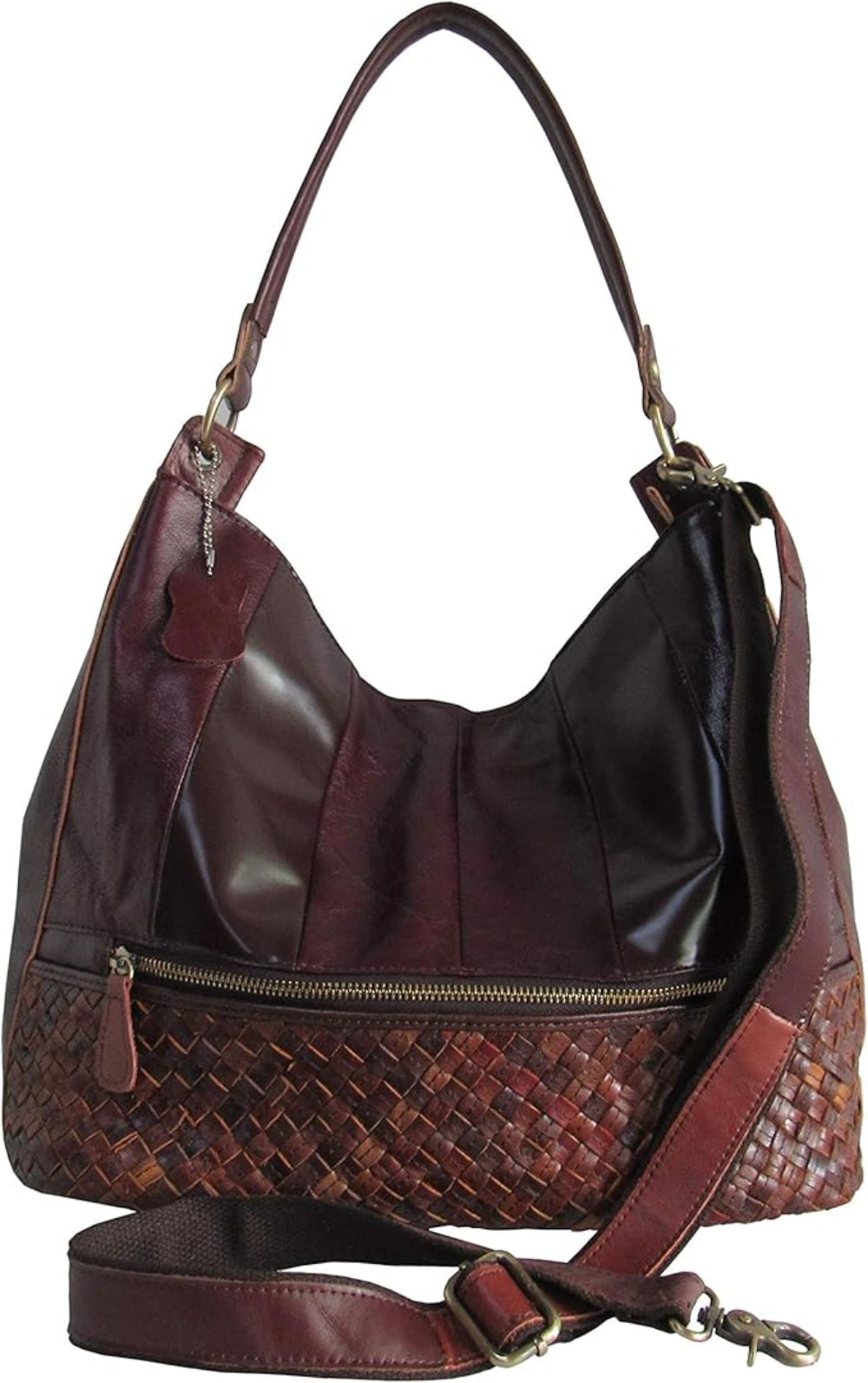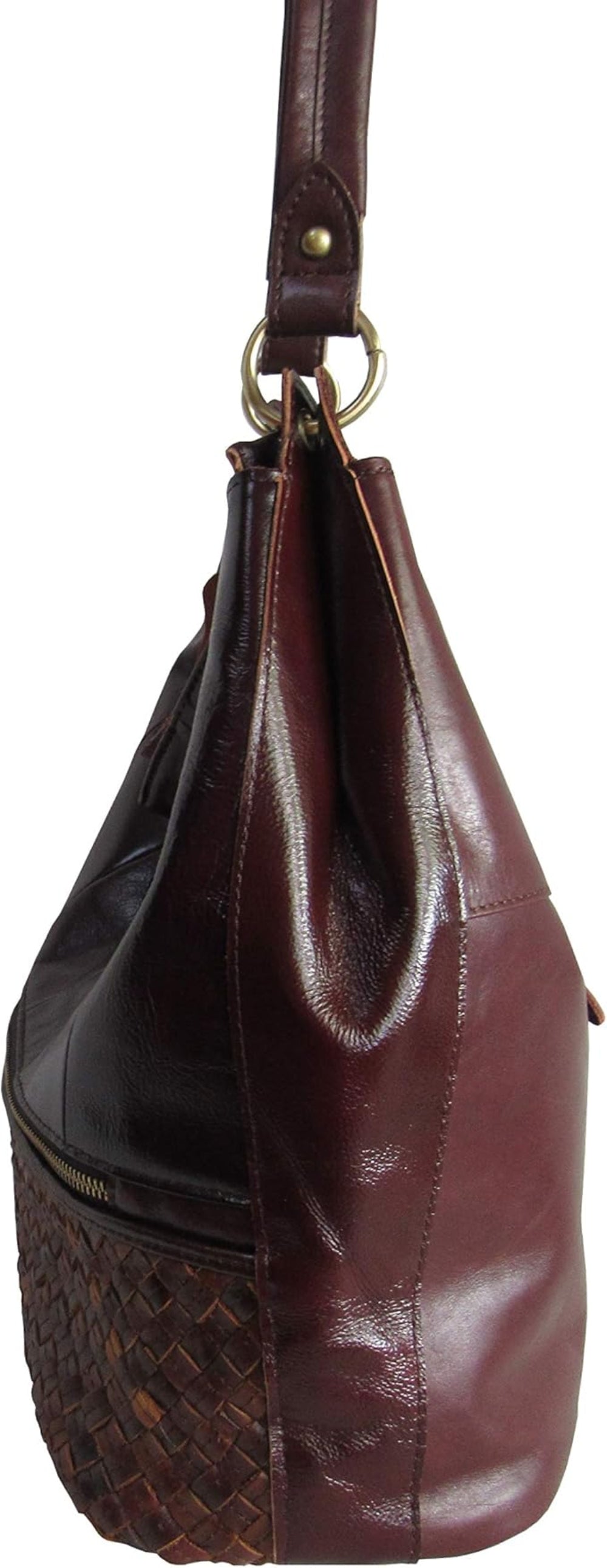 AmeriLeather Colton Leather Shoulder Bag – Top Grain, Woven Pocket, Dual Straps, Bonus Coin Purse, 17.5" Spacious Tote