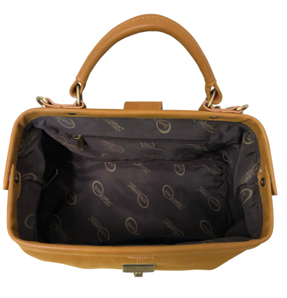 AmeriLeather Hillary Classic Handbag – Top-Grain Leather, Doctor-Style Opening, Brass Hardware, 13" Structured Satchel