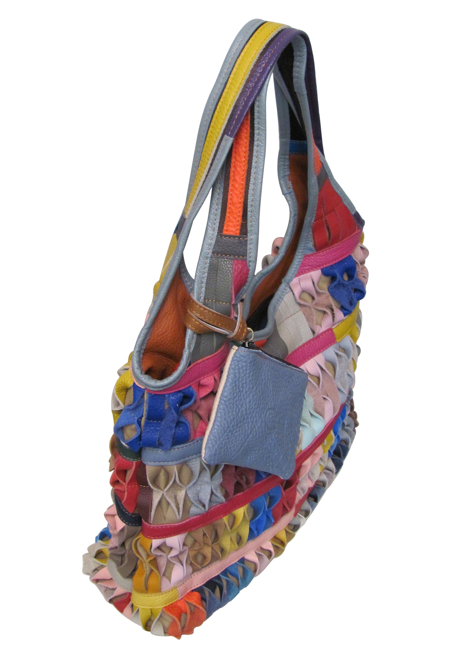SKU - AML-1915-9Honeycomb Leather Tote Bag – Top Grain Leather Carryall with Geometric Texture and Spacious Everyday Design