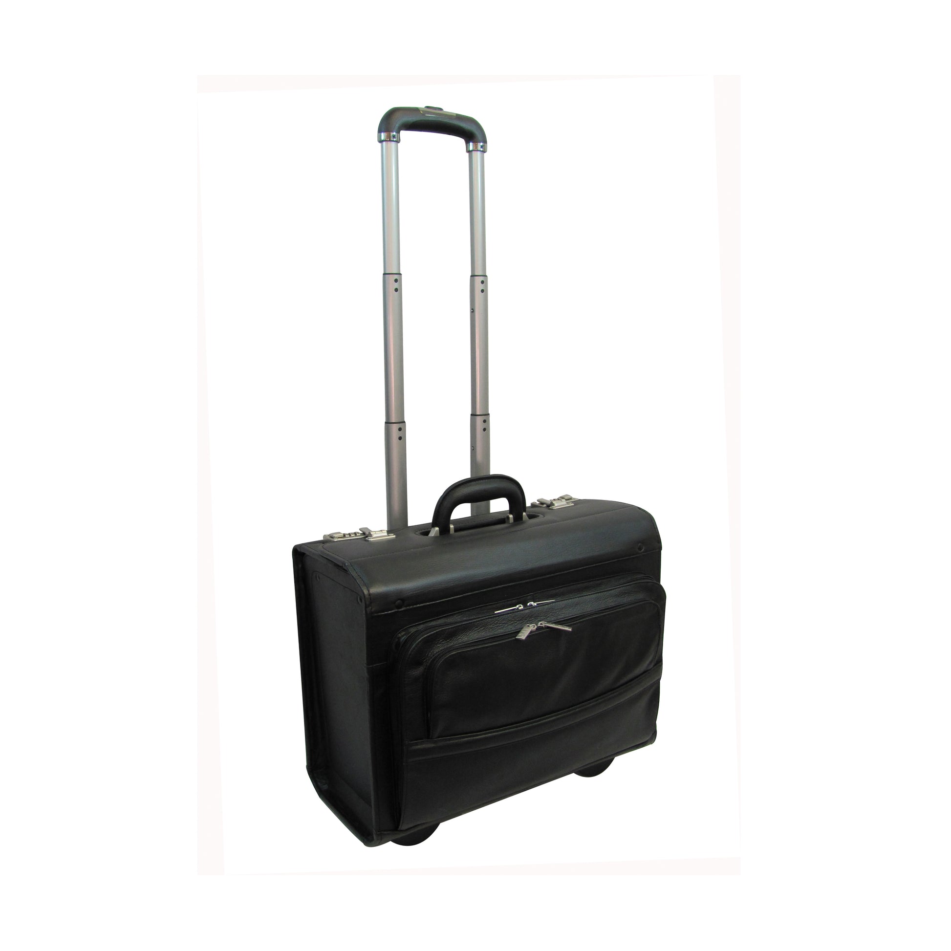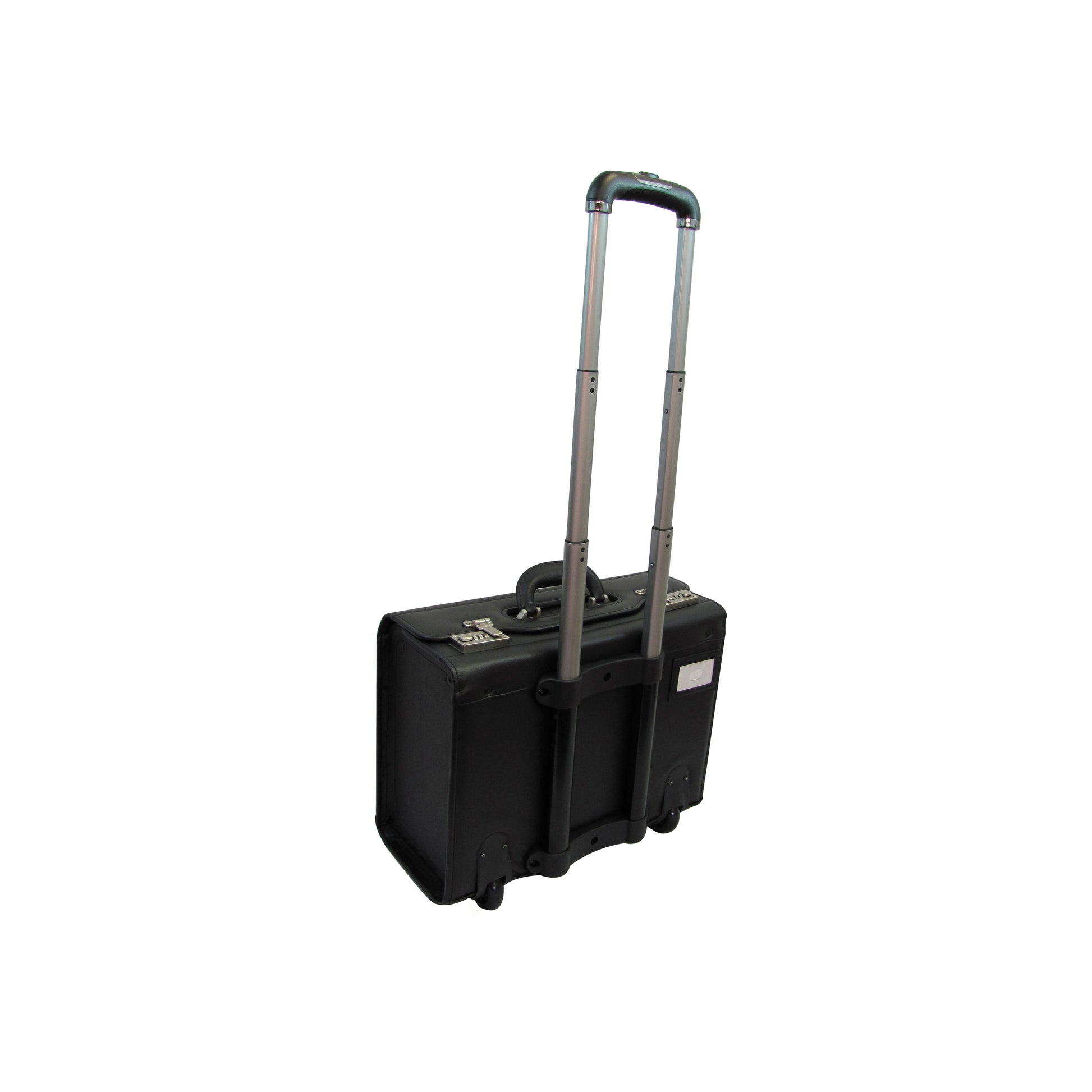 AmeriLeather Rolling Leather Catalog Case with Laptop Sleeve – Organizer, Combo Locks, Telescopic Handle, 18" Business Bag