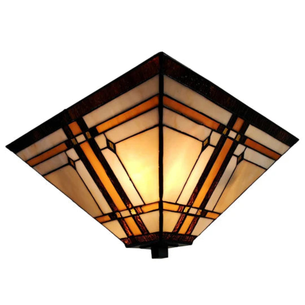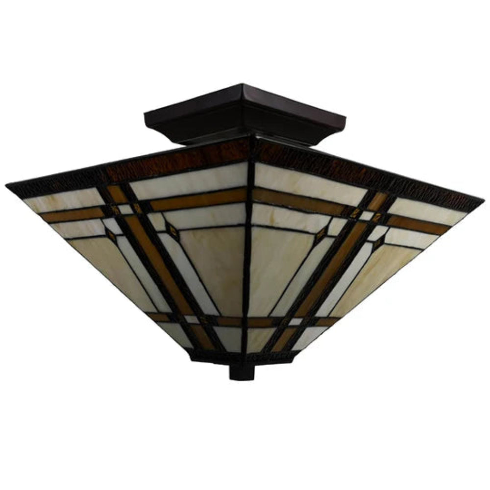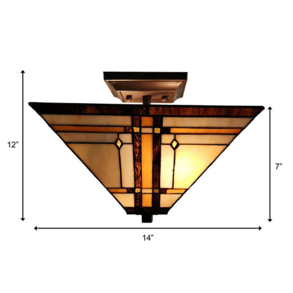 Amora Lighting Tiffany-Style Mission 2-Light Semi-Flush Ceiling Fixture 14 Inch, Multi-colored