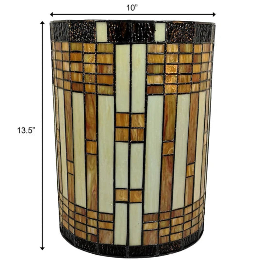 With geometric patterns and understated warm colors, this sconce is the epitome of mission style. This piece is handcrafted using the same techniques that were developed by Louis Comfort Tiffany in the early 1900s. The handcrafted nature of this product creates variations in color, size and design. If buying two of the same item, slight differences should be expected. If buying two of the same item, slight differences should be expect.
