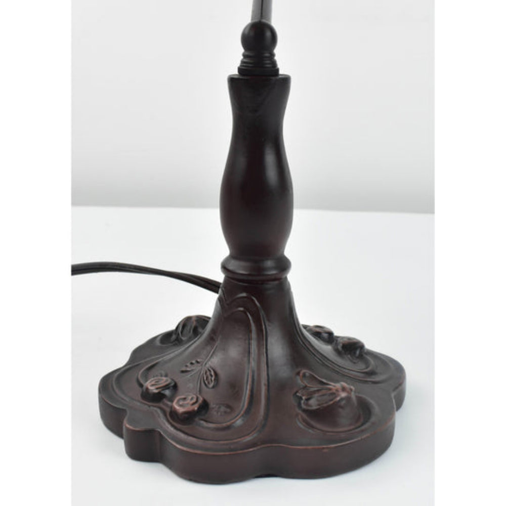 - Cast resin base in a rich dark brown finish with elegant detailing