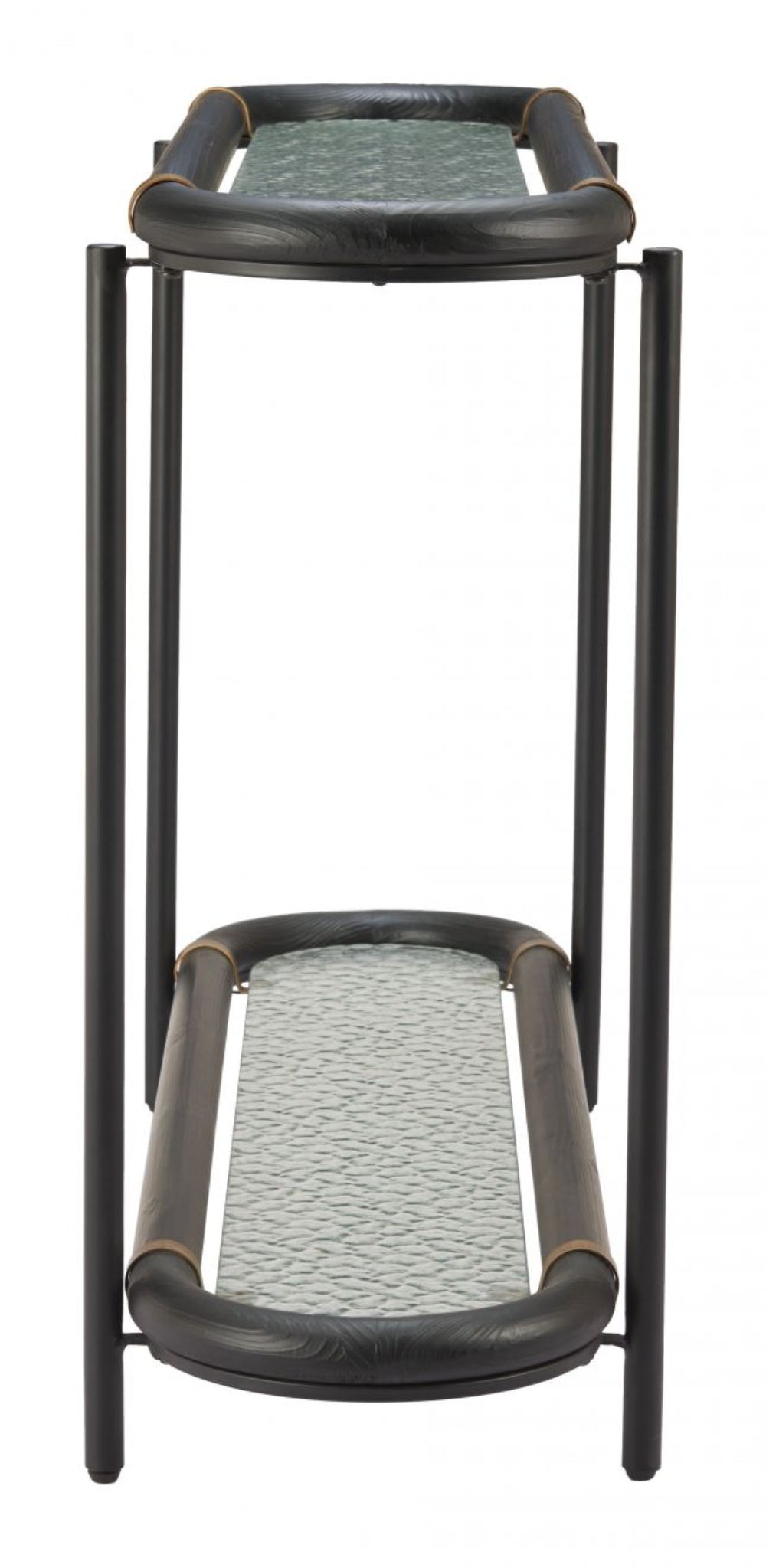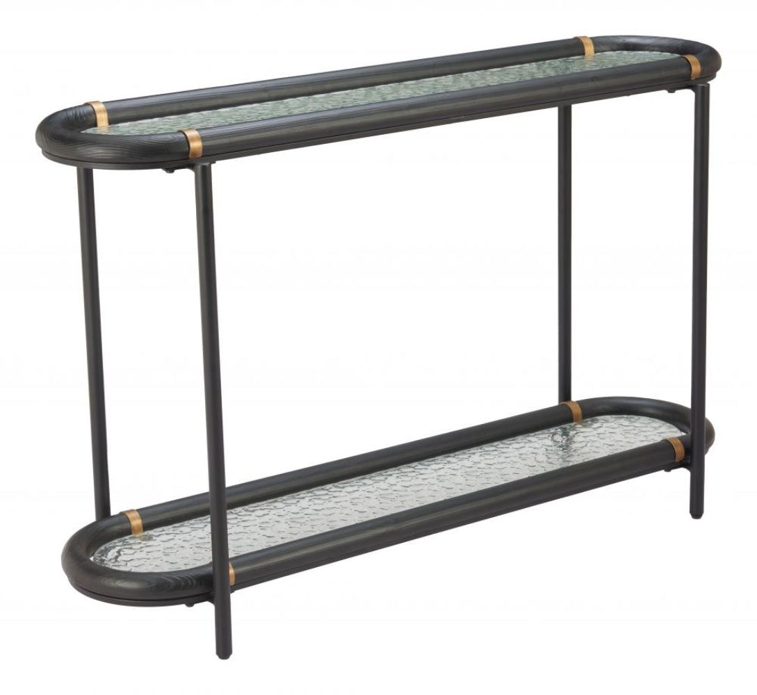 SKU - ZUO-110725Aneis Black Console Table 32.1" H – Tempered Rippled Glass, Fir Wood & Steel Frame for Entryway or Living Room