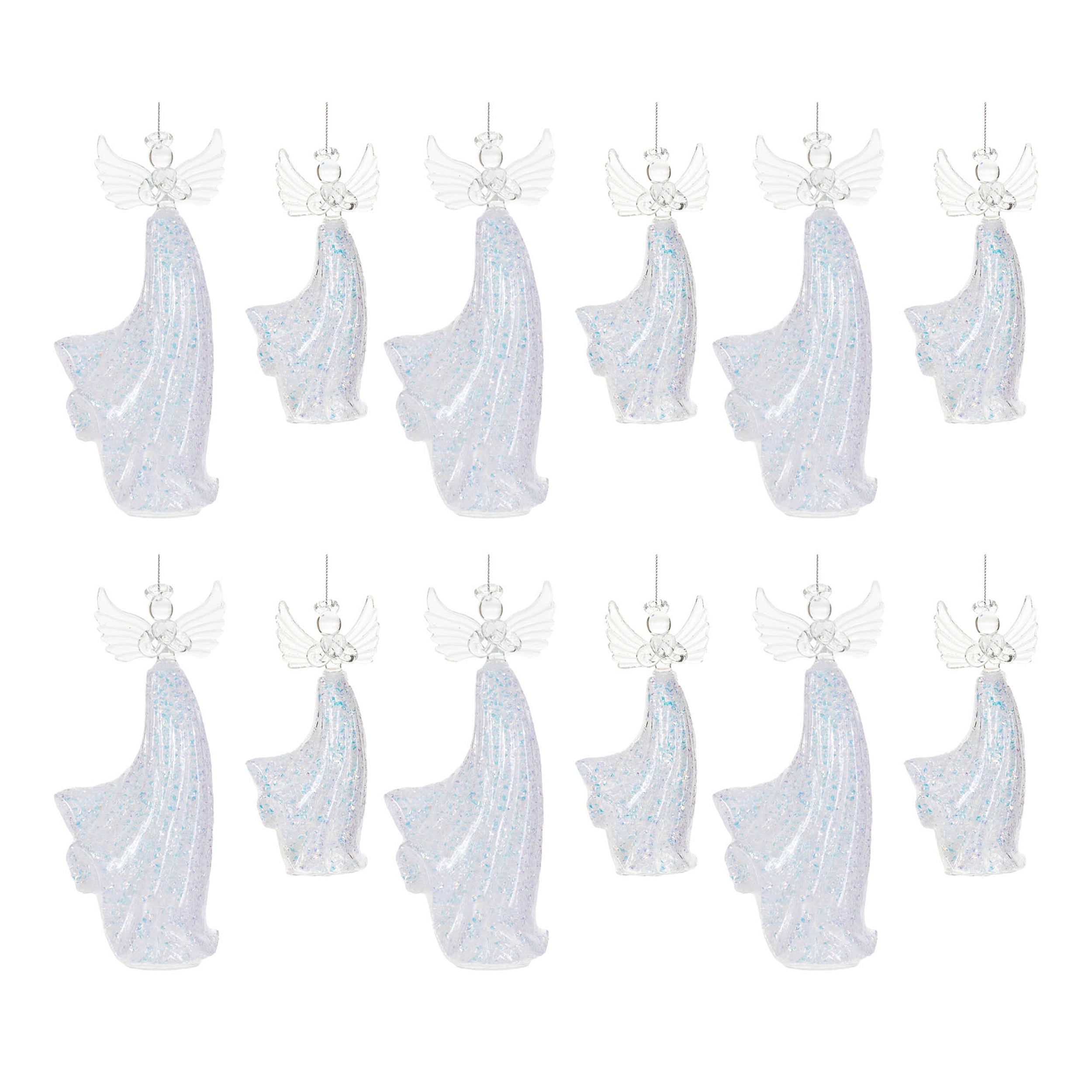 Angel Ornament (Set of 6) 7.5"H Clear Glass Iridescent Glam Holiday Decor By Melrose