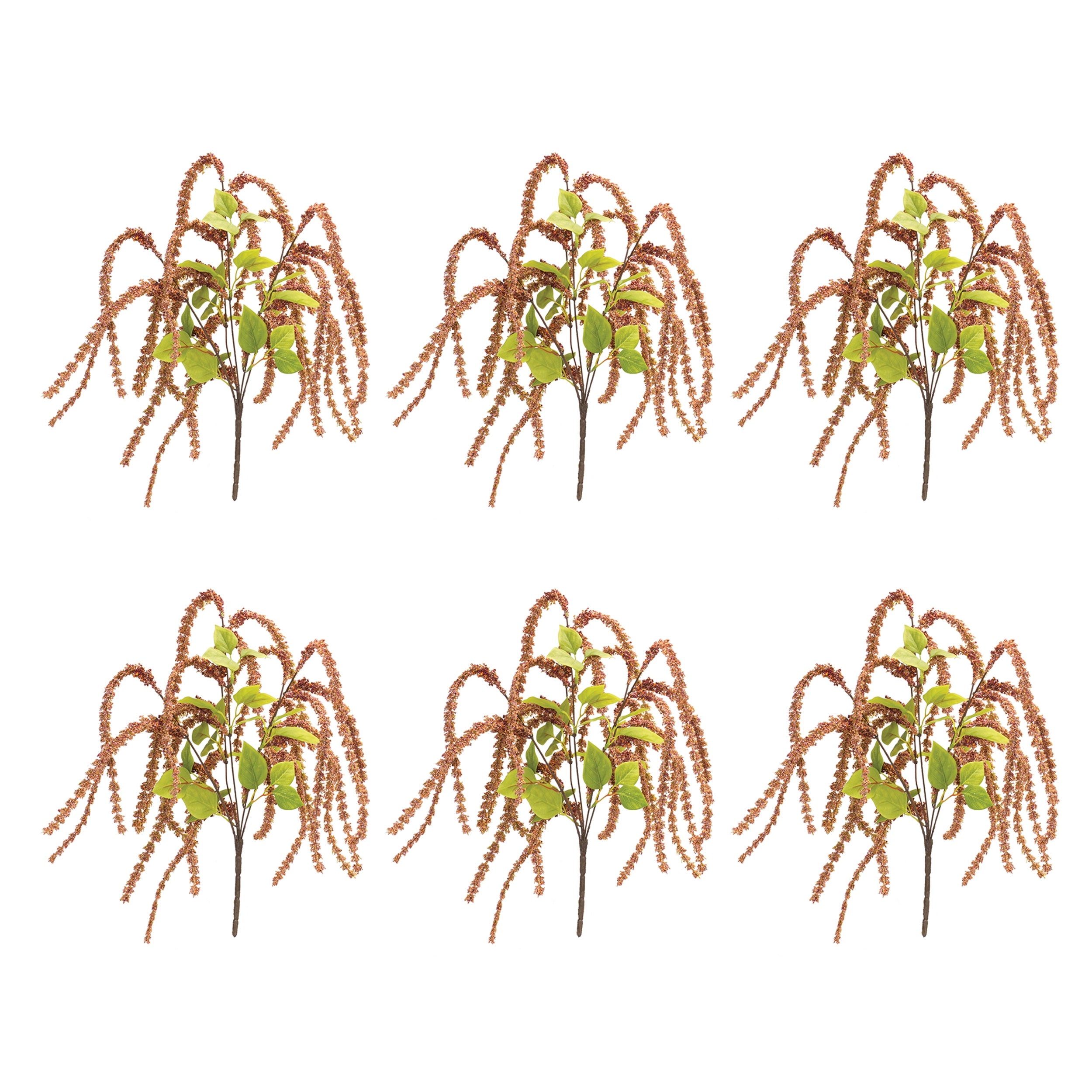 Astible Bush – Set of 6 – 26.5"H Faux Green & Salmon Stems – Plastic Floral Home Decor By Melrose