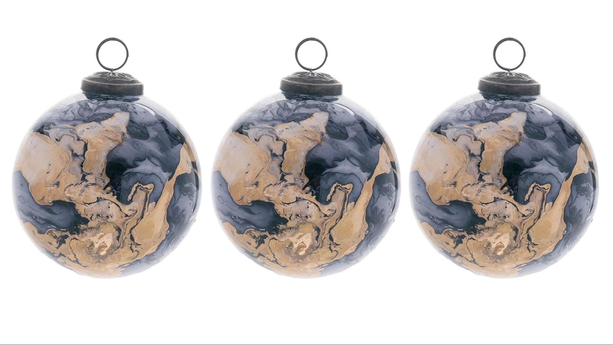 Blue and Gold Marble Glass Ball Ornaments – Set of 6
