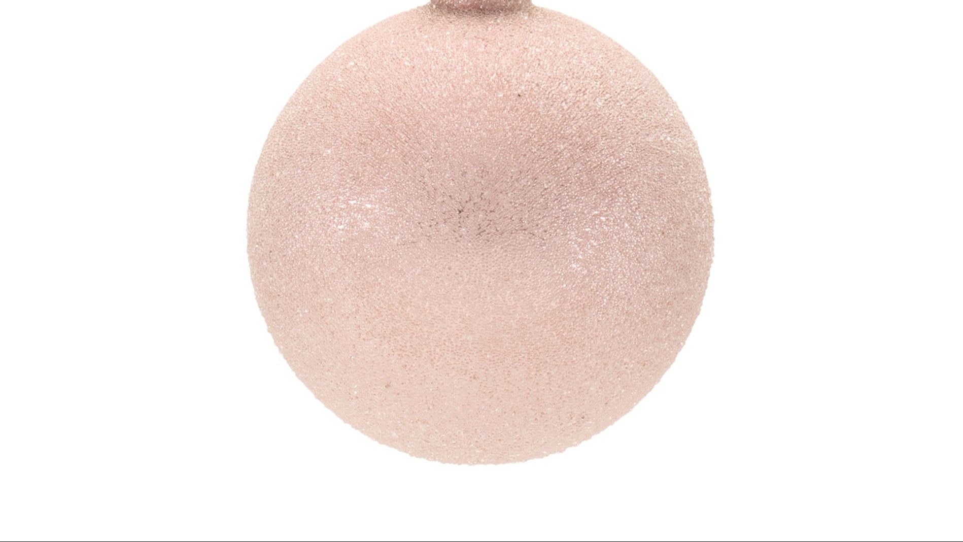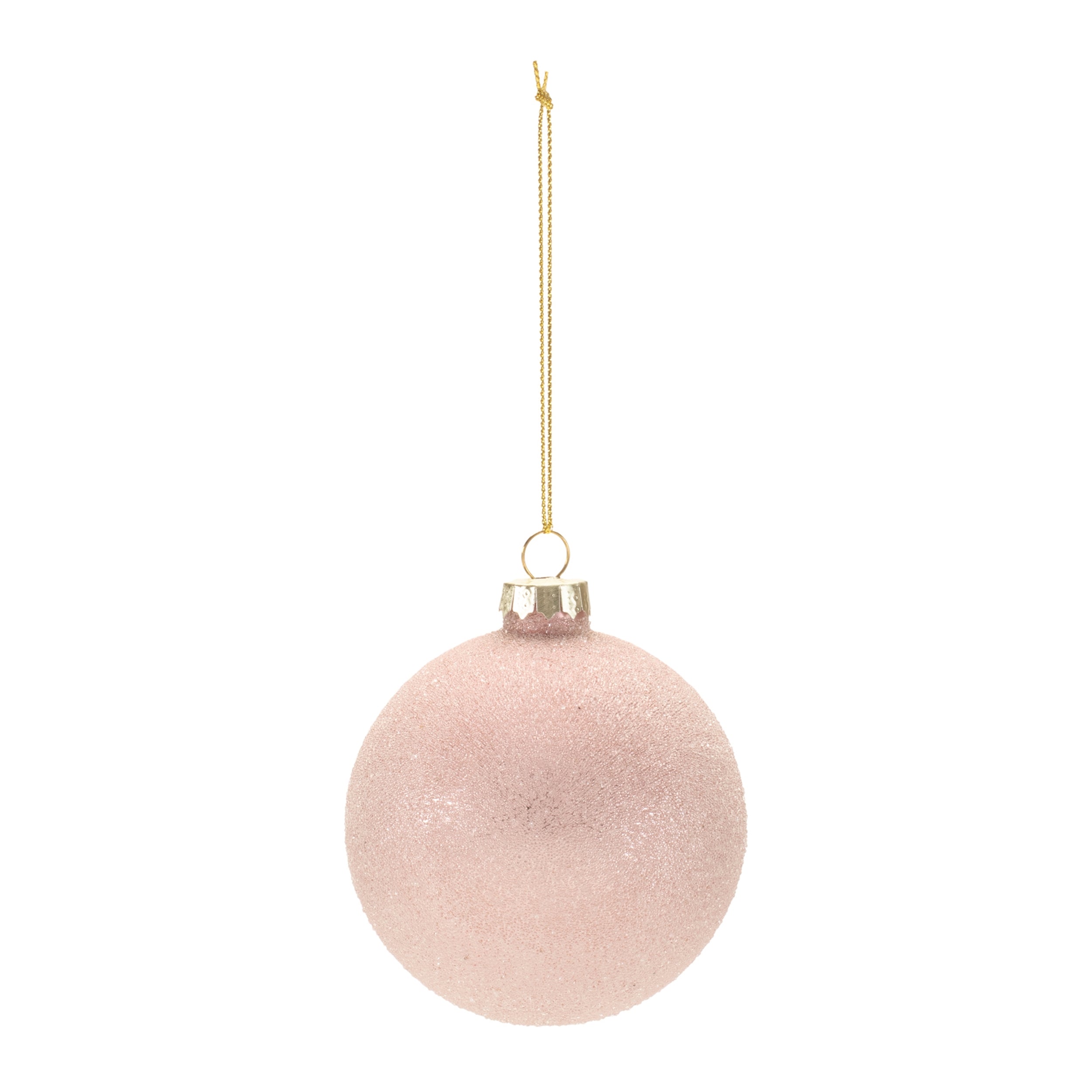 - Set of 12 glass ball ornaments in soft pink with metallic accents