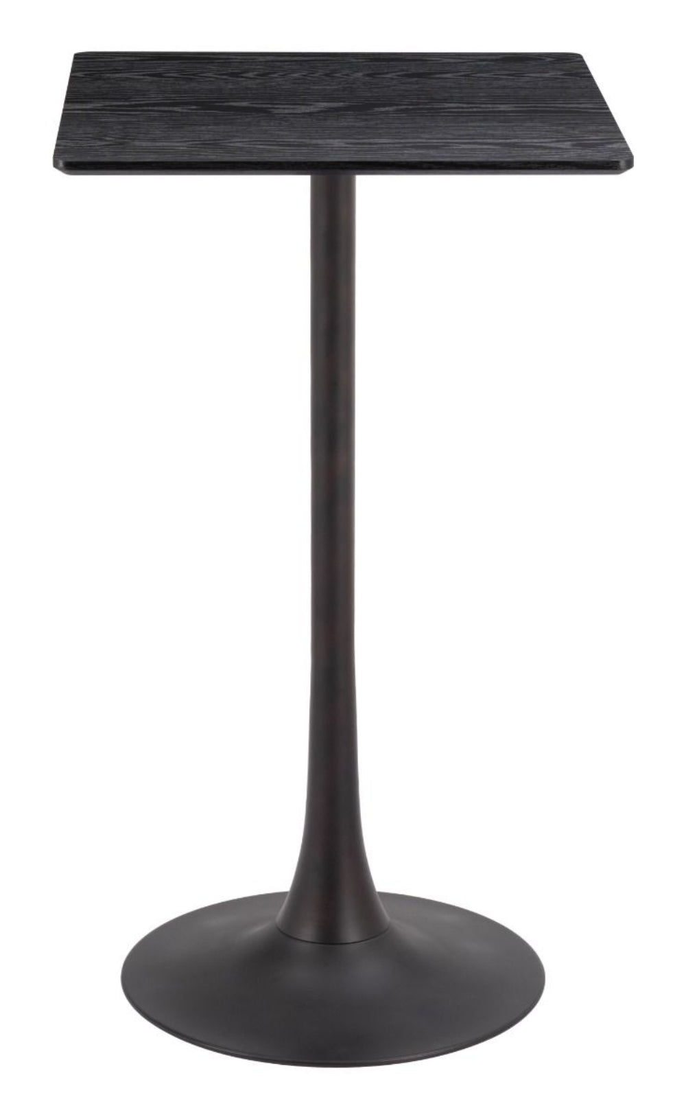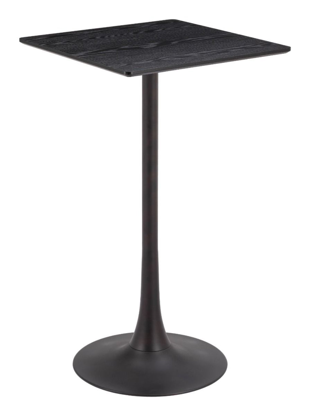 Bar Table 41.7"H Black – Faux Wood MDF Square Top with Powder-Coated Steel Pedestal Base, Modern Indoor Accent by Zuo Modern
