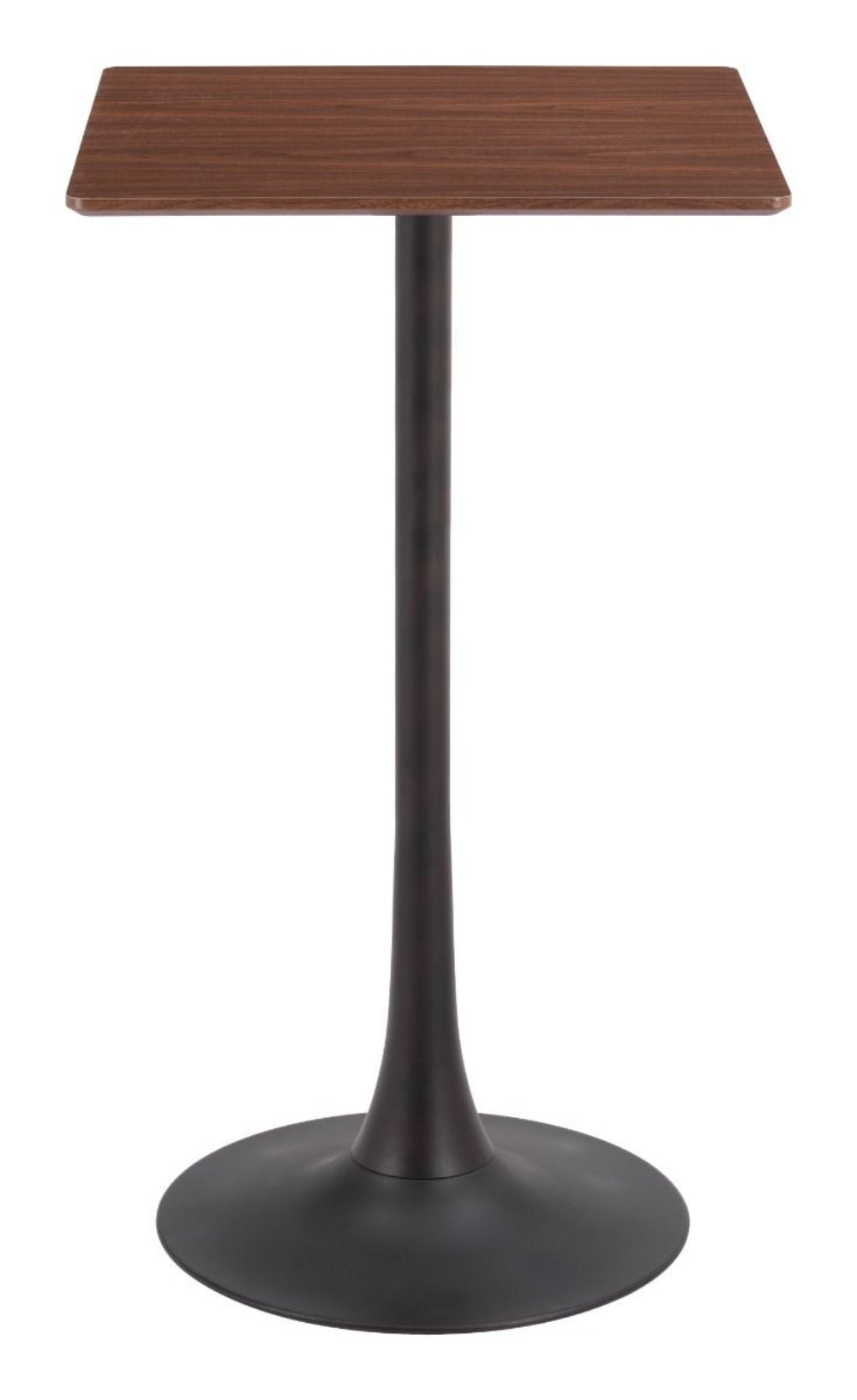 Bar Table 41.7"H Brown – Faux Wood MDF Square Top with Powder-Coated Steel Pedestal Base, Modern Indoor Accent by Zuo Modern