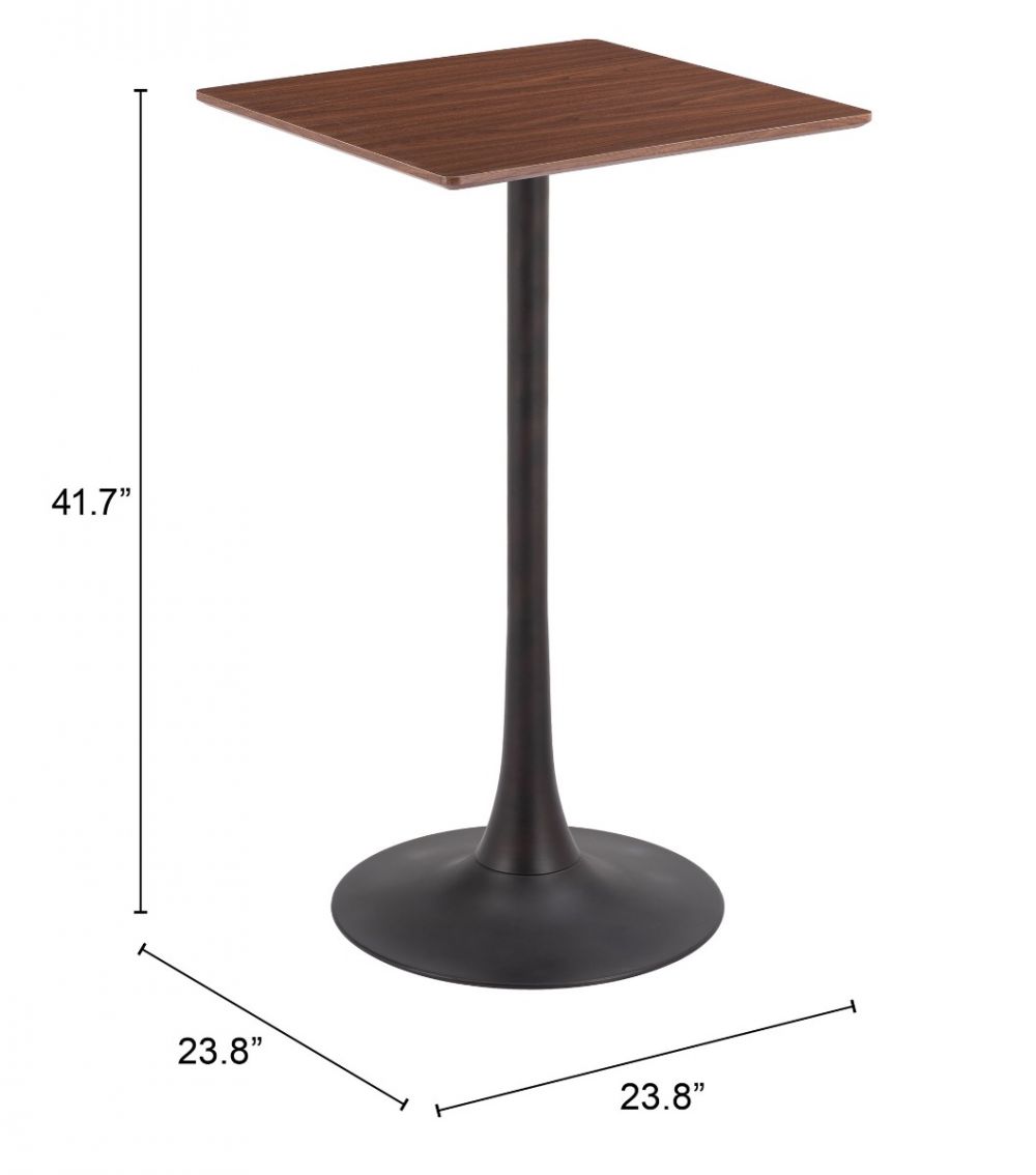 SKU - ZUO-109832Bar Table 41.7"H Brown – Faux Wood MDF Square Top with Powder-Coated Steel Pedestal Base, Modern Indoor Accent