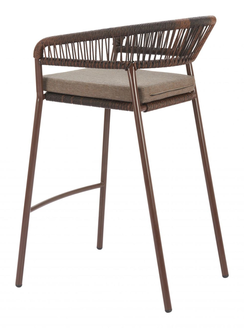 Barstool – 30.5" H Outdoor Brown Powder-Coated Steel & Rattan By Zuo Modern (Set of 2)