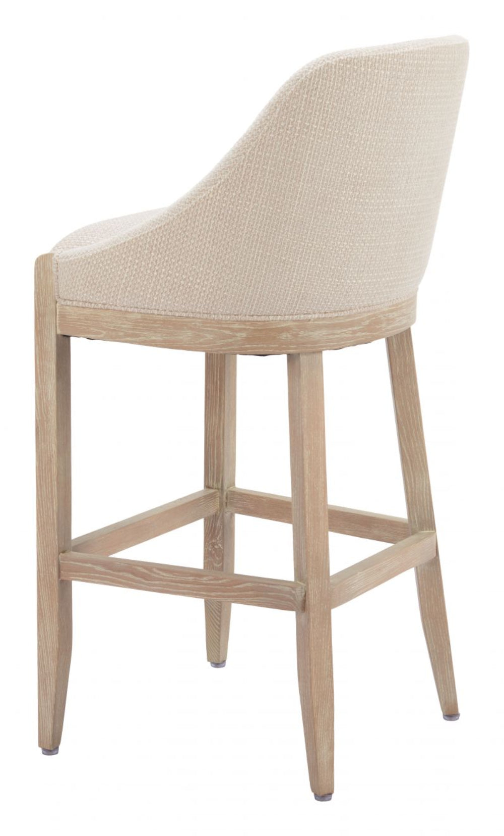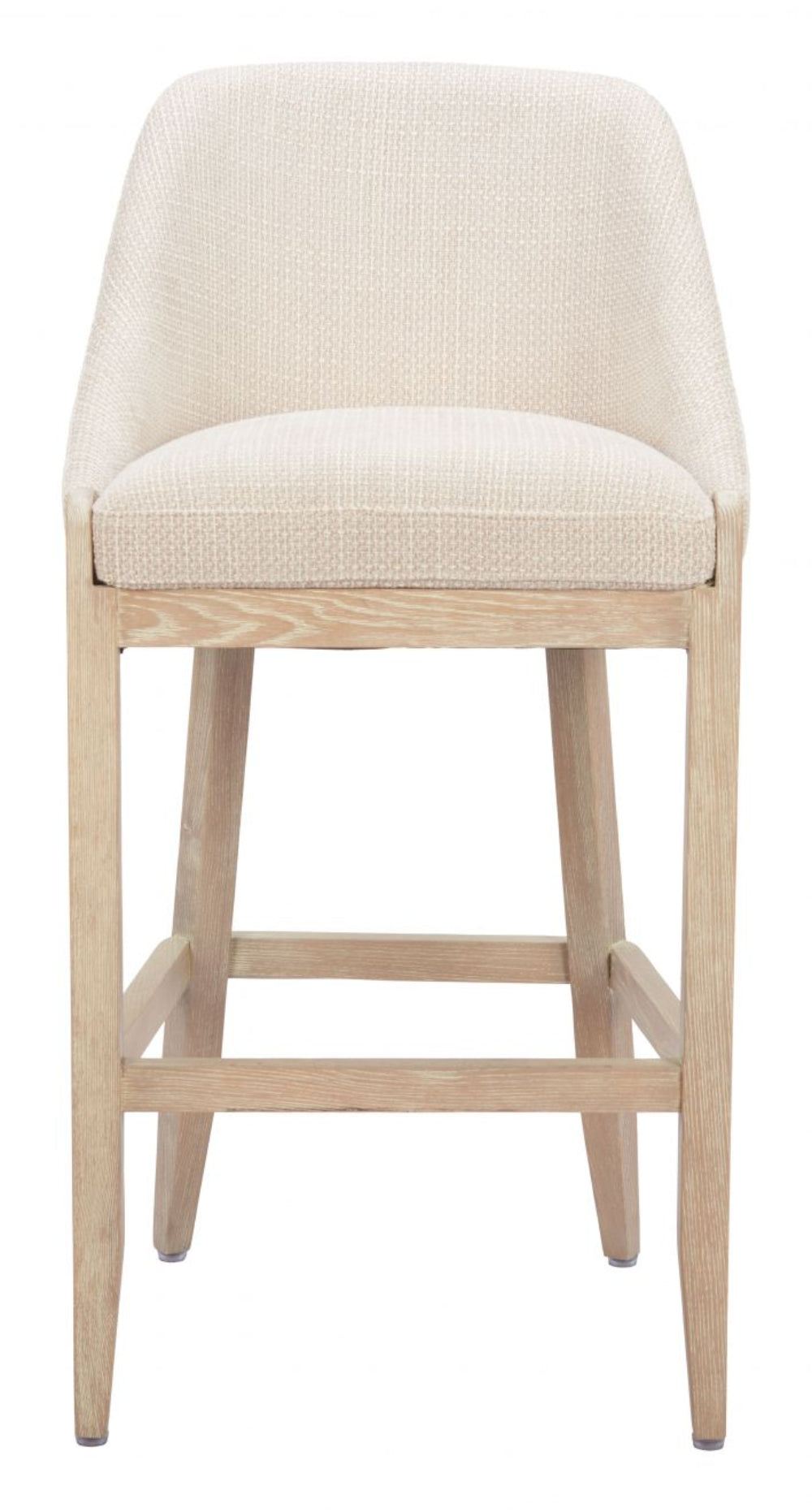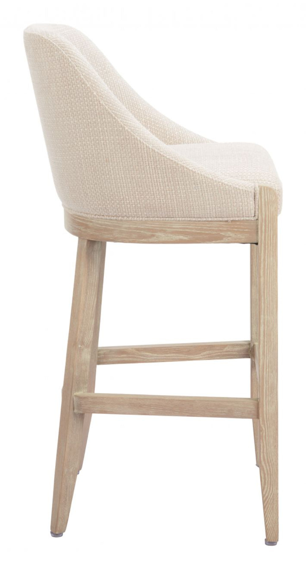 Barstool 41.1"H, Textured Polyester Fabric Seat in Beige Finish with Solid Ash Wood Base by Zuo Modern