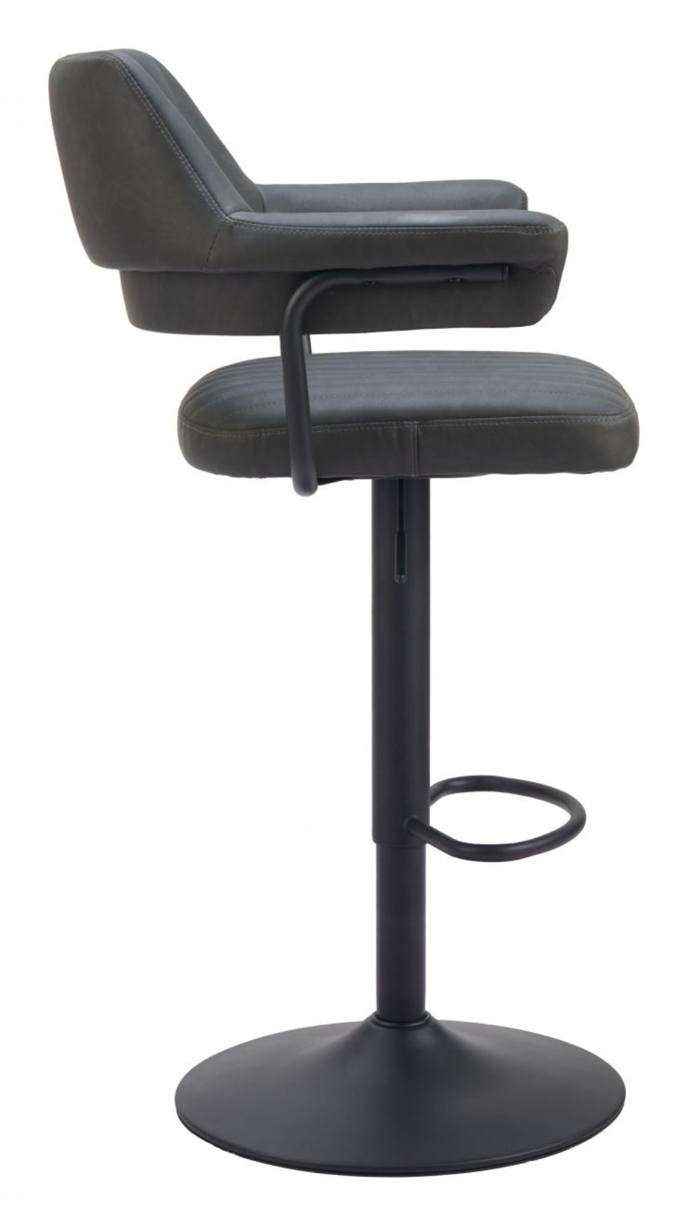 Barstool 46.9 - Gray Finish With Faux Leather & Steel Frame, Adjustable with Armrests and 360° Swivel By Zuo Modern