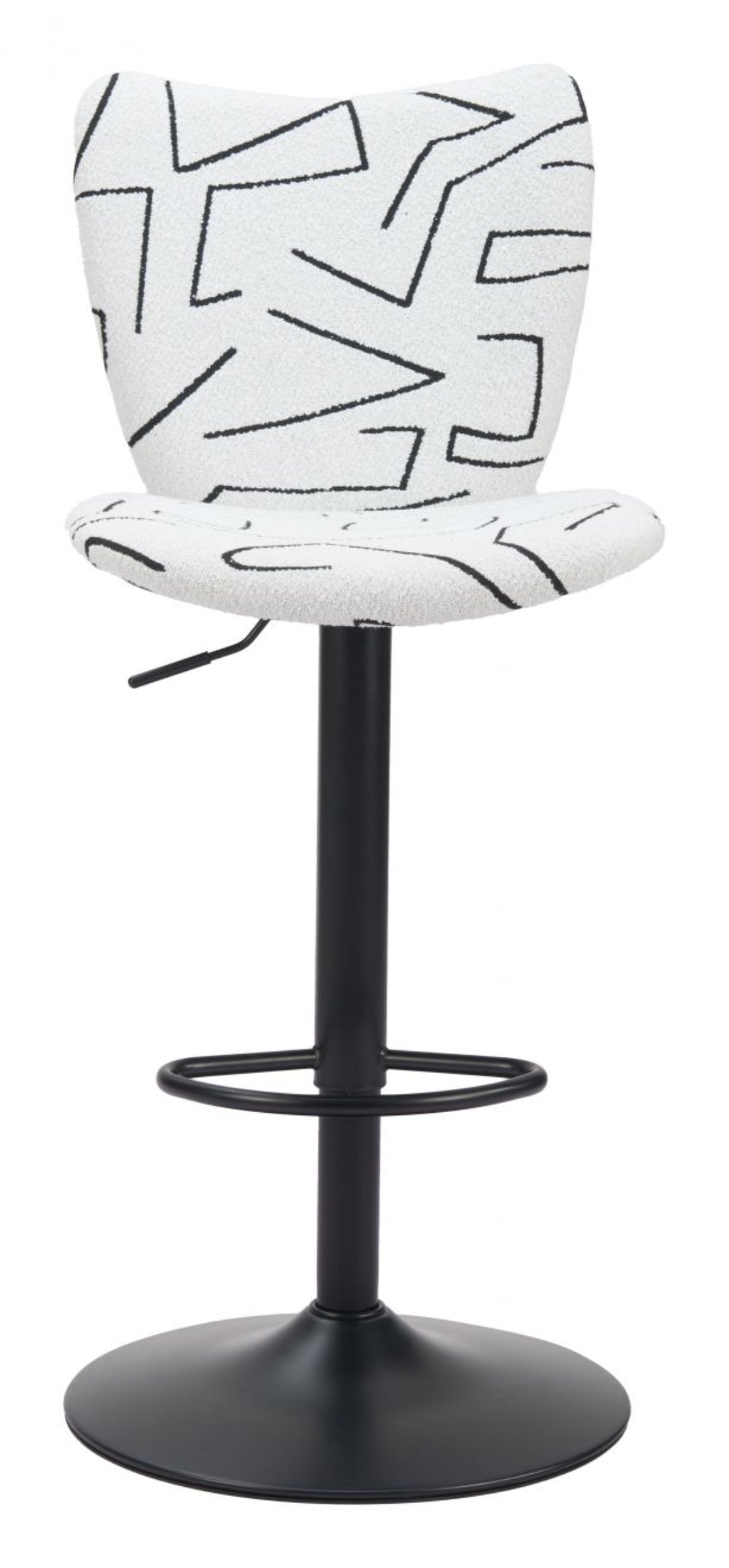 Barstool 44.5"– Textured Fabric in White Finish – Adjustable Modern Swivel by Zuo Modern (Set of 2)