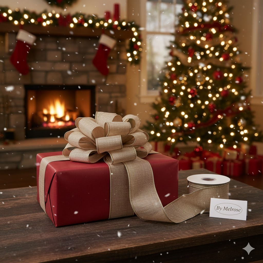 SKU - MEL-91720DSBeige Ribbon Set – Wired Cotton & Lurex 2.5W x 5YD for Gift Bows Brand Name By Melrose