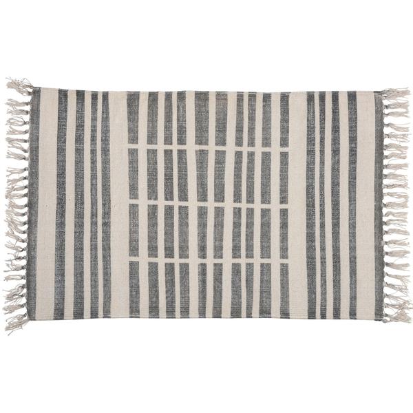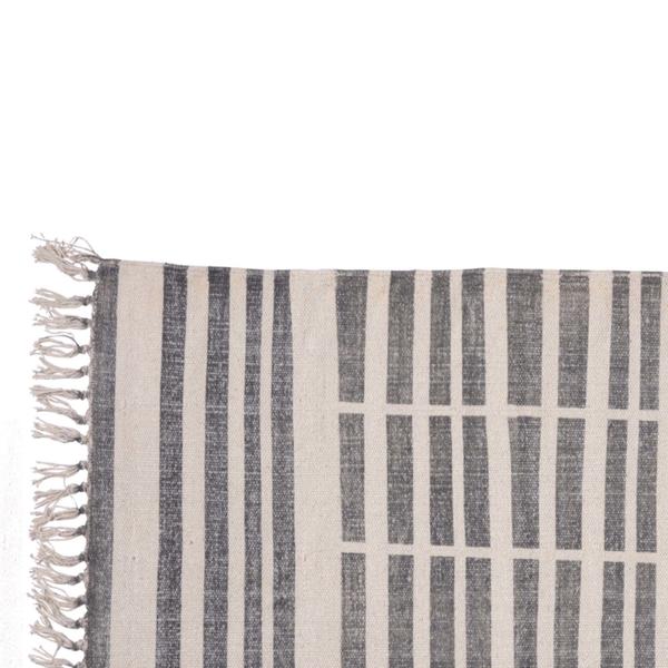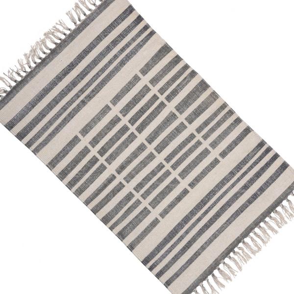 Adorn your existingdecor setting by bringing in this transitional style Rug which showcases broken stripe print with fringe details. Crafted from cotton fabric, it is accented with gray and white color fabric.