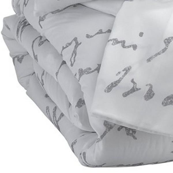 Benzara 3 Piece Fabric Queen Comforter Set with Script Print, White and Gray