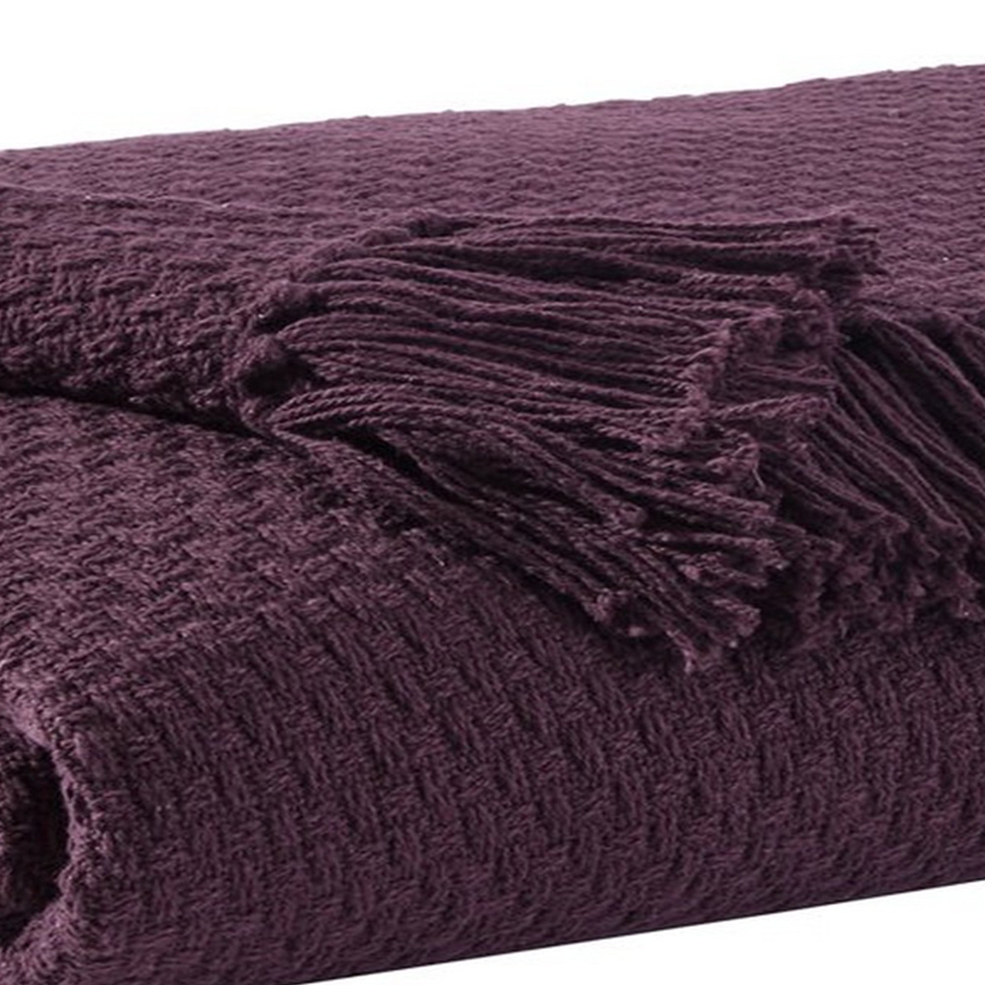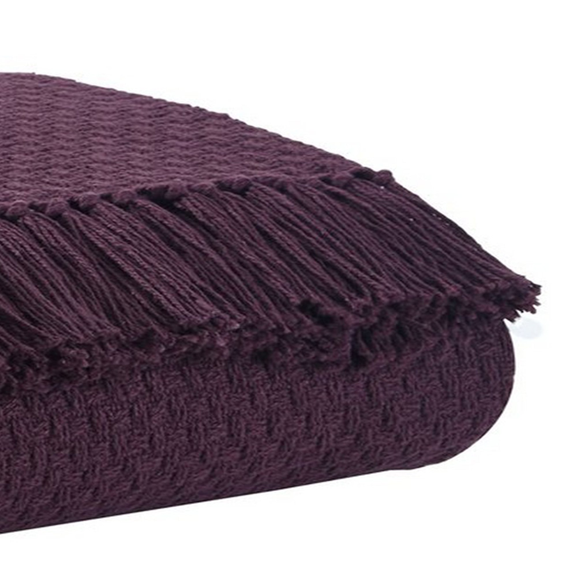 Benzara 60 x 50 Cotton Throw with Textured and Fringe Details, Set of 3, Purple