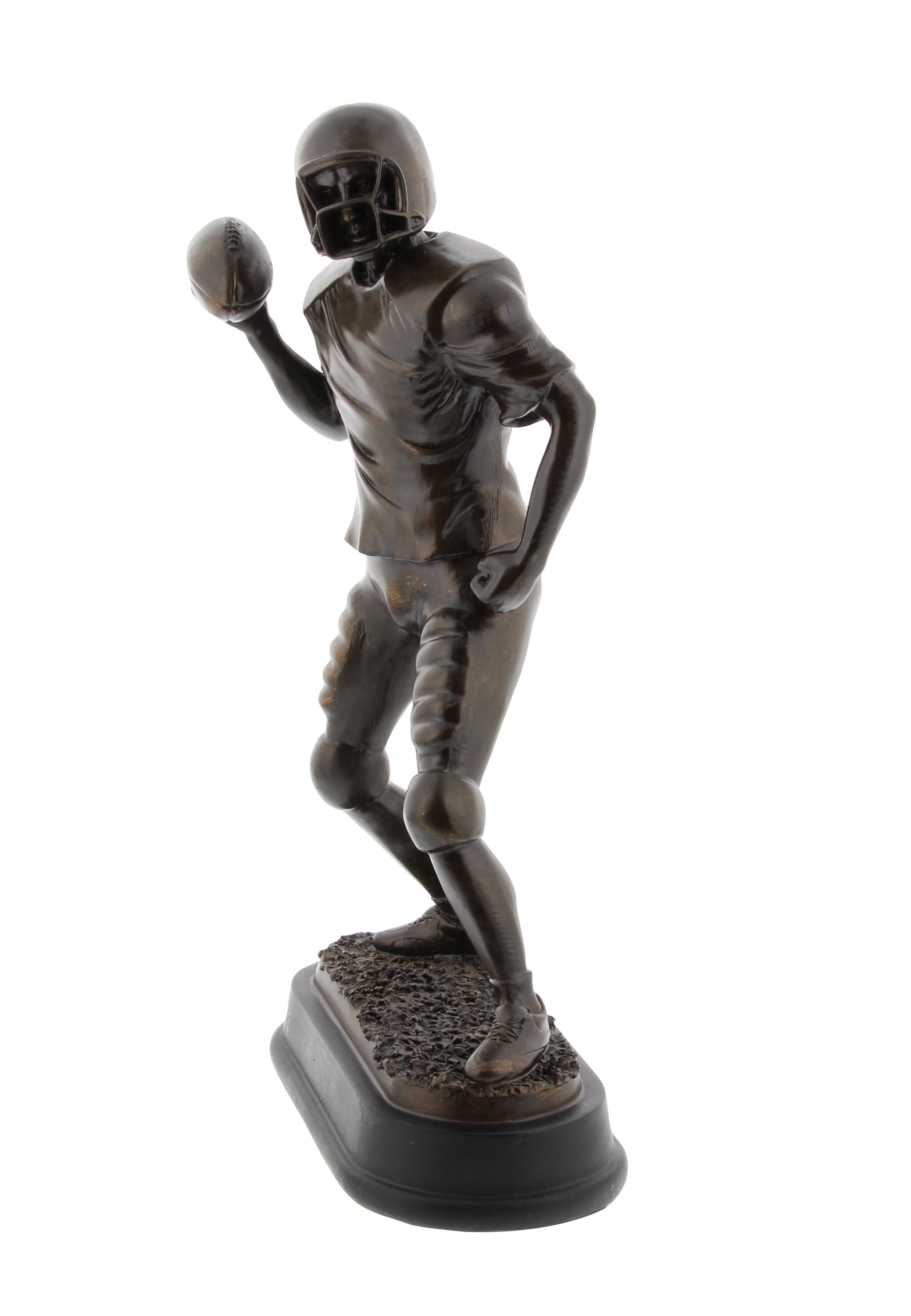 A perfect pick for sports admirers, this Statuette will be a great addition to your home. Made from polystone in a dark bronze finish, it shows a football player in a ball throwing stance. To replicate real like aesthetics, textural grass is shown beneath the figure of the player.