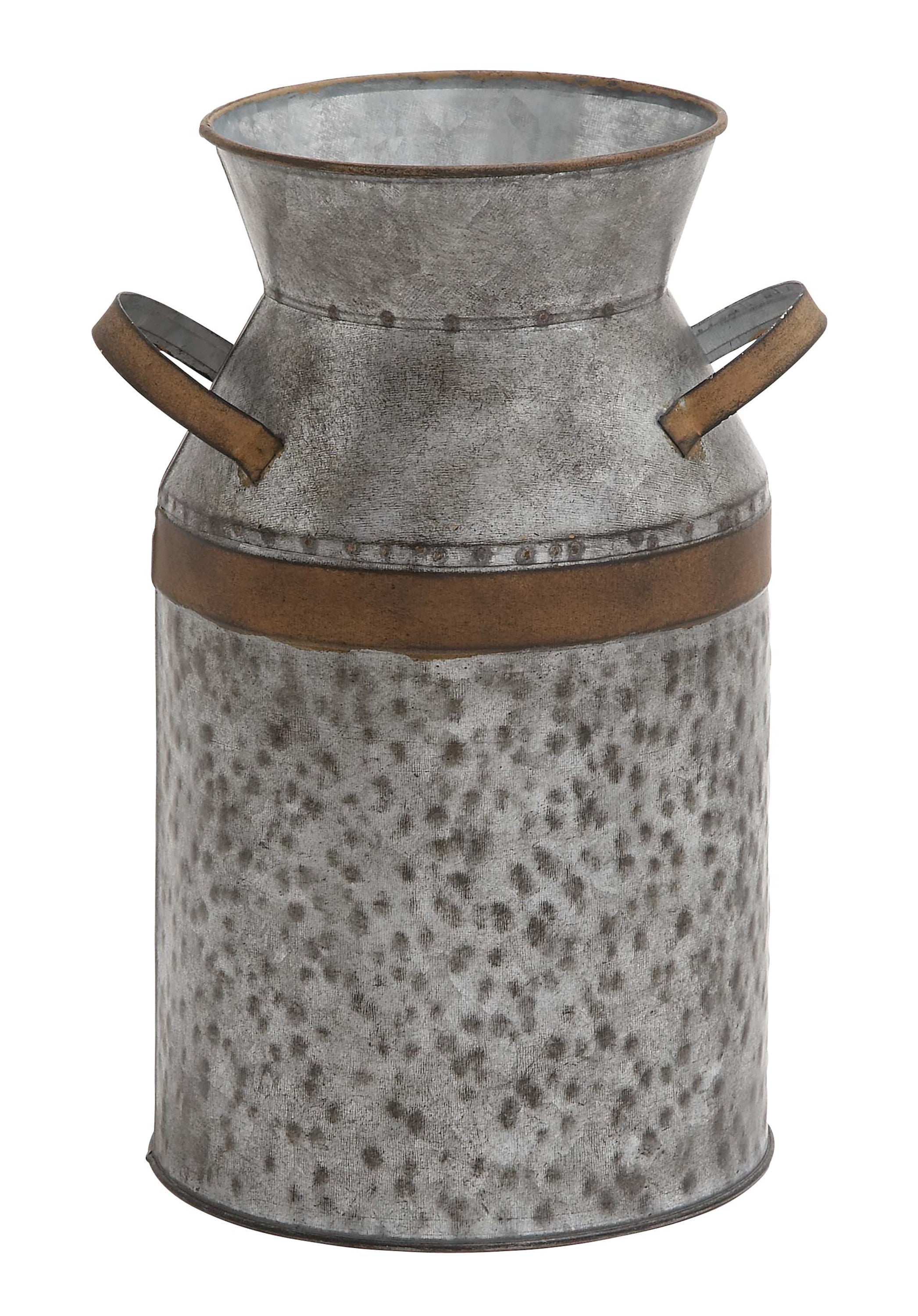 Benzara BM216570 Metal Milk Can with Rust Accents and Curved Handles, Galvanized Gray