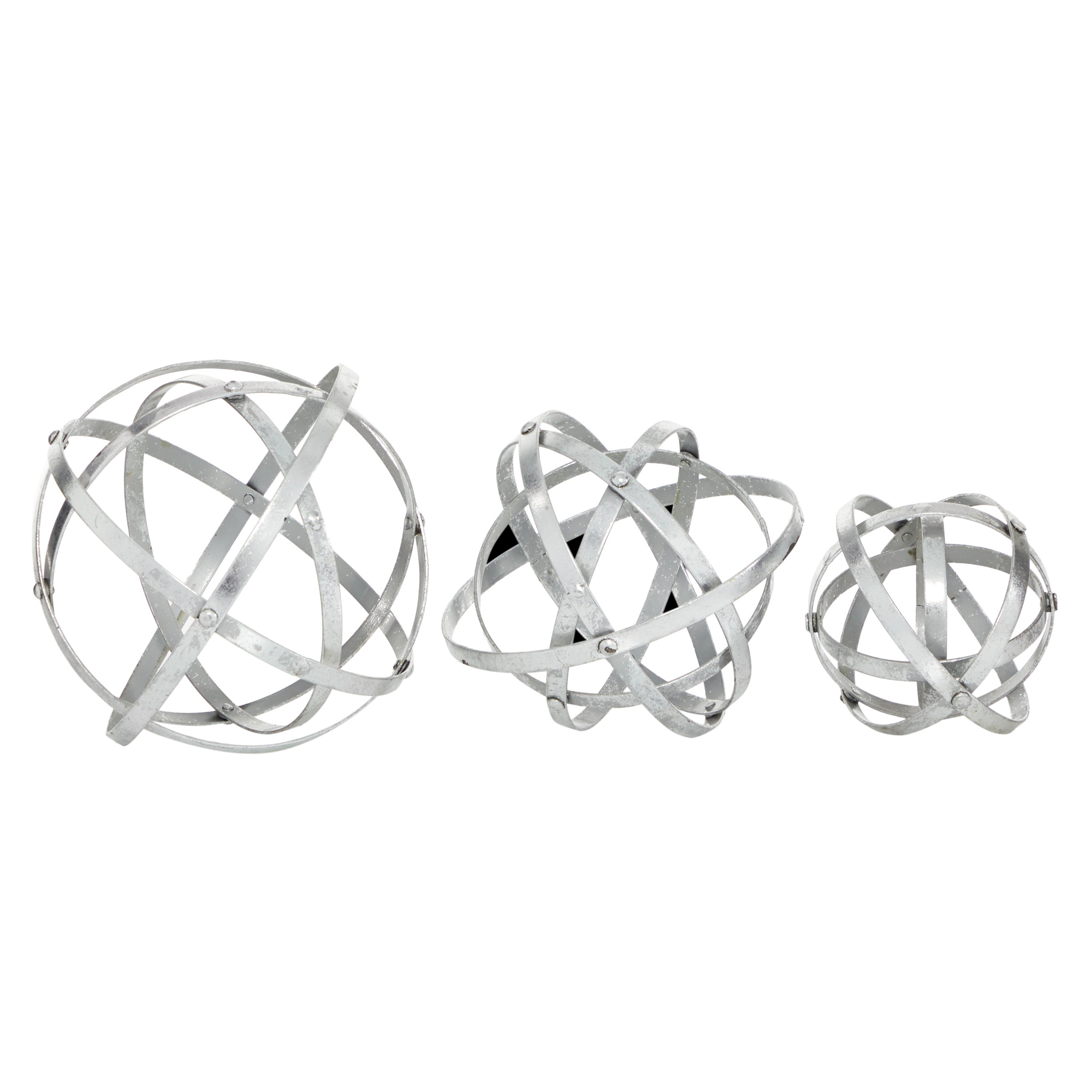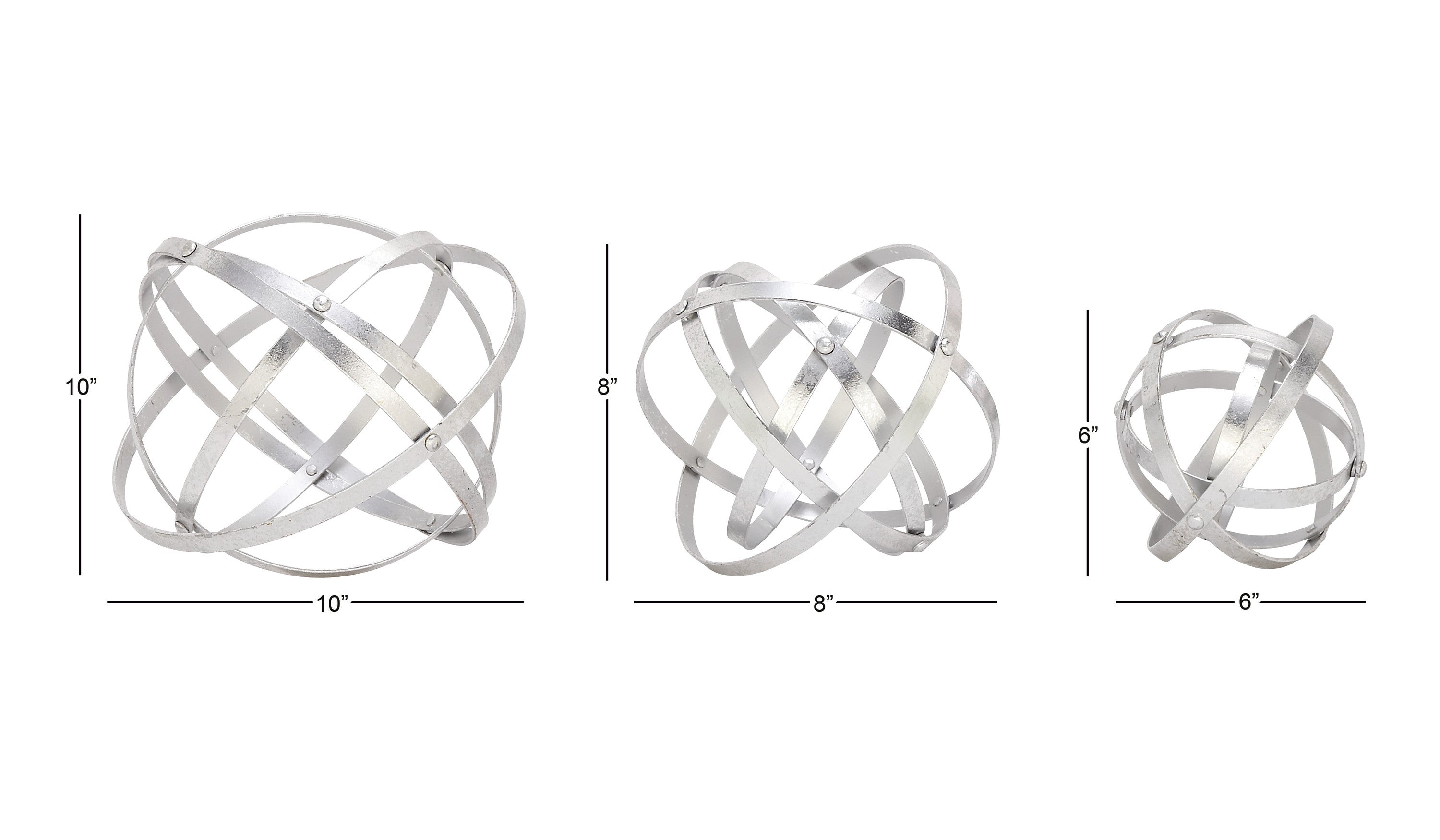 Benzara BM216610 Atom Like Metal Orb Sculptures with Geometric Design, Set of 3, Silver