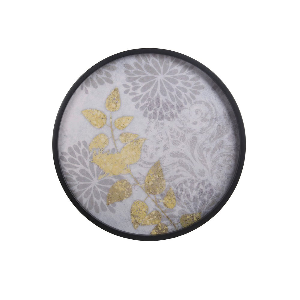 SKU - BZBM217018Metal Accent Table with Floral Pattern Round Tray Top Sold by Uber Bazaar