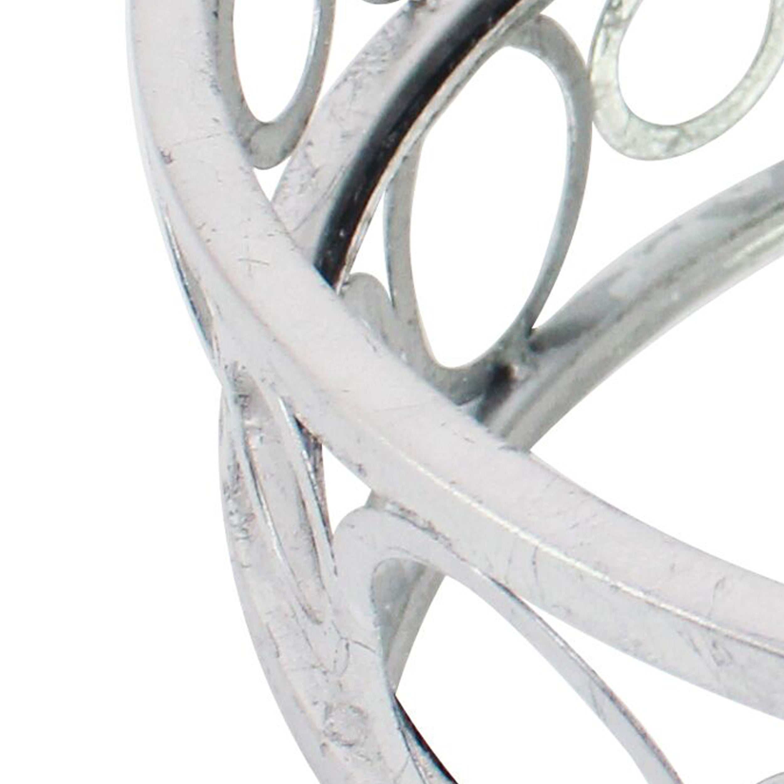 - Constructed from metal, it is accented in the hue of silver.