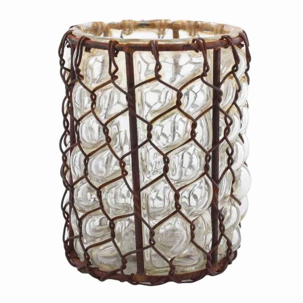 Create a rustic vignette anywhere in your home with this Vase. Featuring a frosted, textured glass body with honeycomb pattern and twisted wire frame in patina finish, this vase gives an antique colonial look to your space that creates a high style atmosphere.