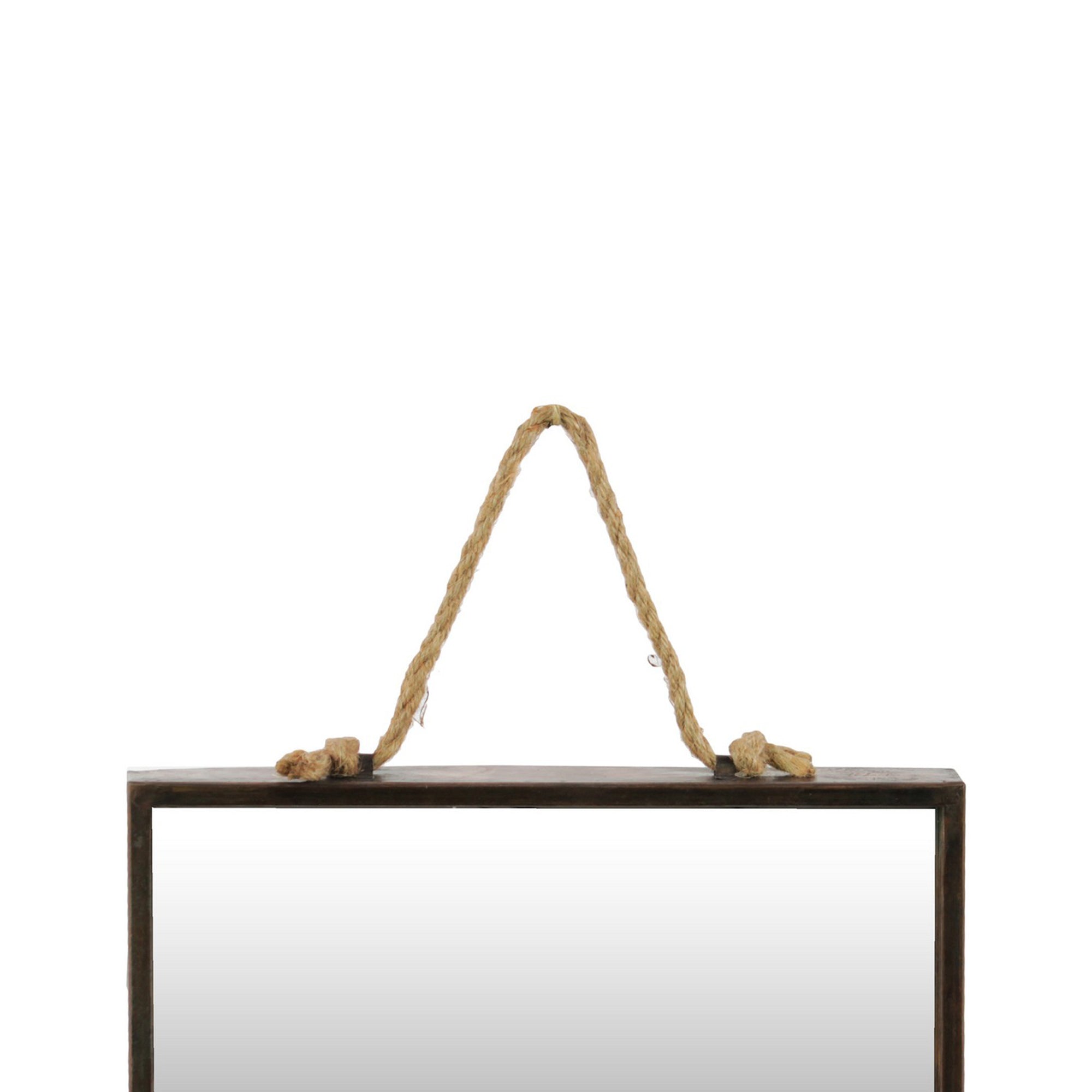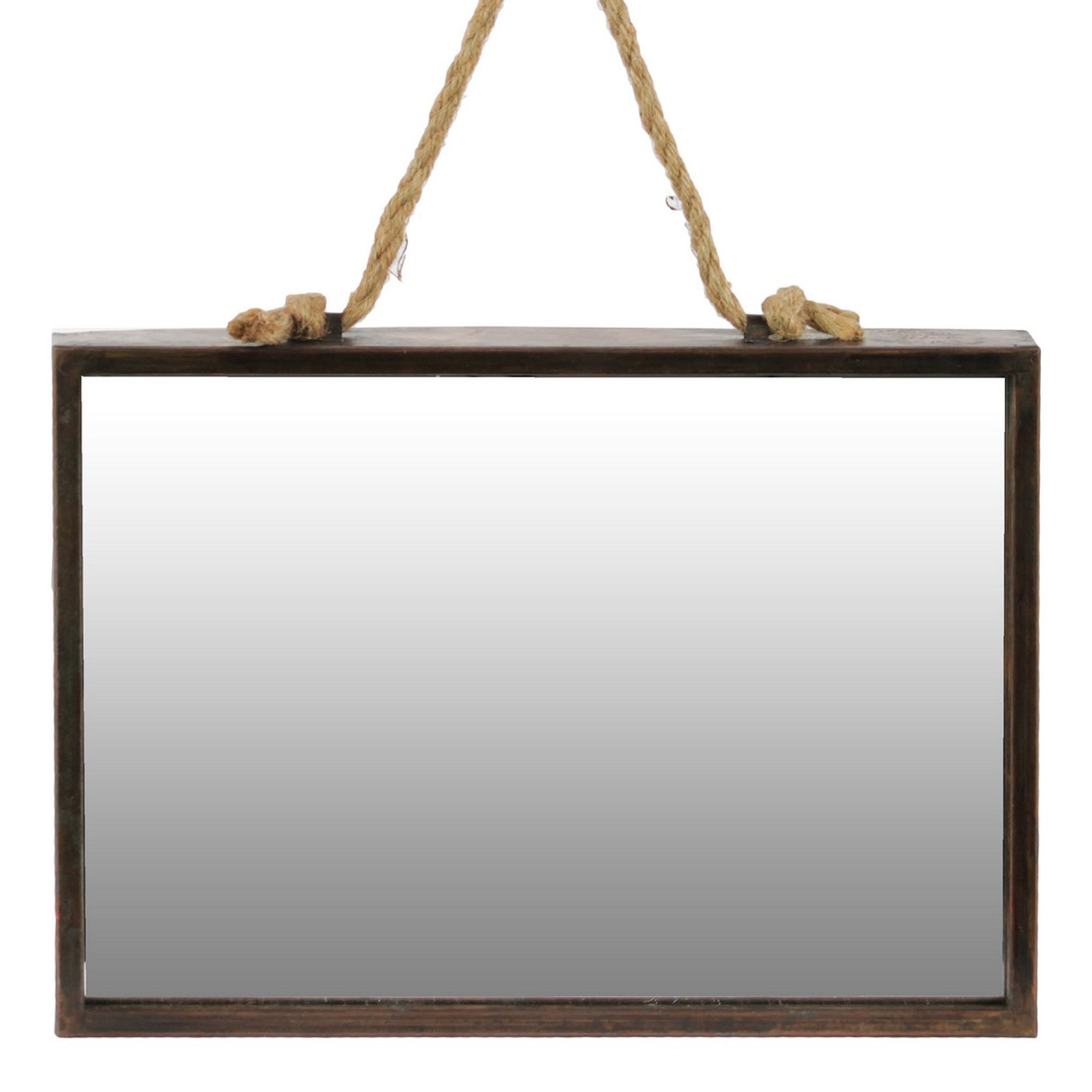 Benzara BM219103 Metal Frame Rectangular Wall Mirror with Rope Hanger, Set of 2, Bronze