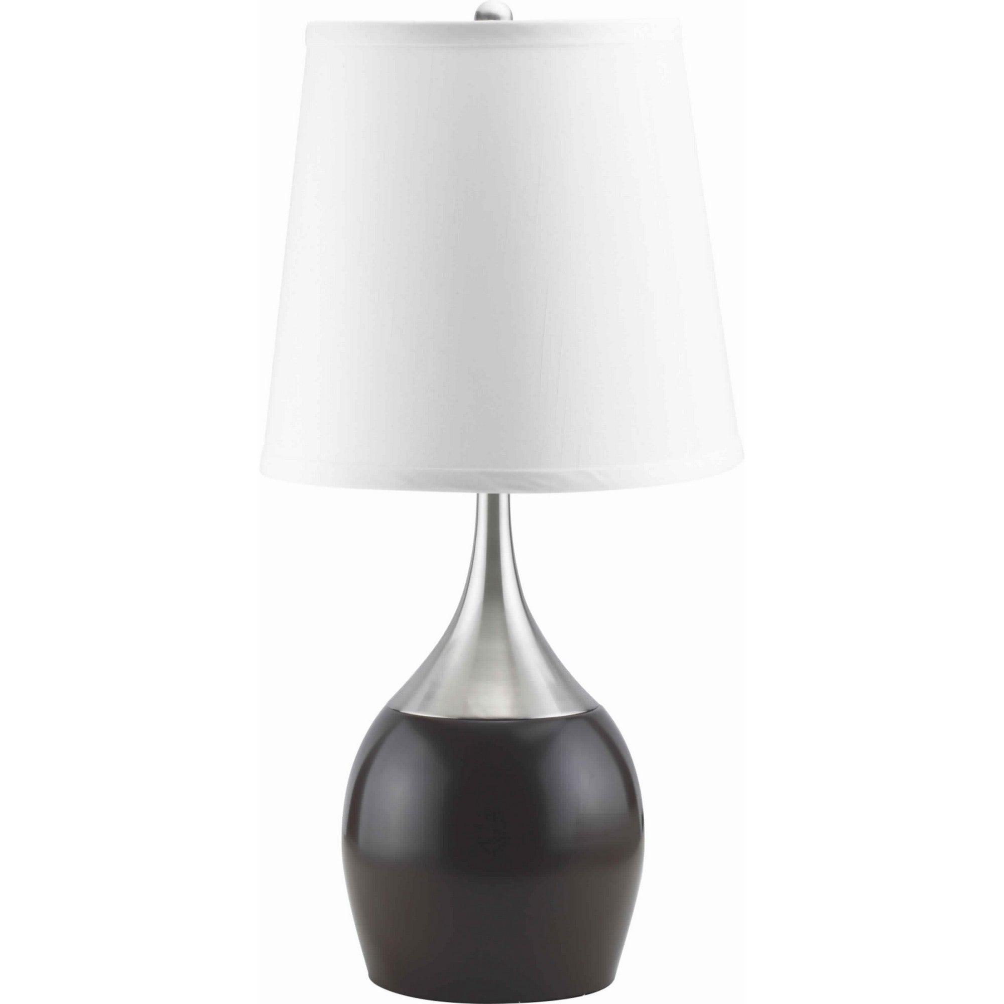 Stylize your transitional space with the tasteful appeal of this Table Lamps. Featuring a black and silver finished metal base and white finished drum shade, these lamps are sure to create a warm and inviting shimmer when illuminated.