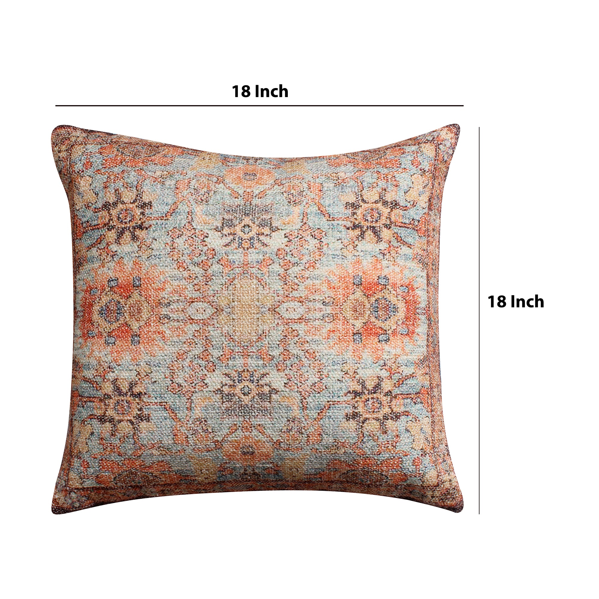 Benzara BM221662 18 x 18 Handwoven Cotton Accent Pillow with Floral Print, Orange and Brown