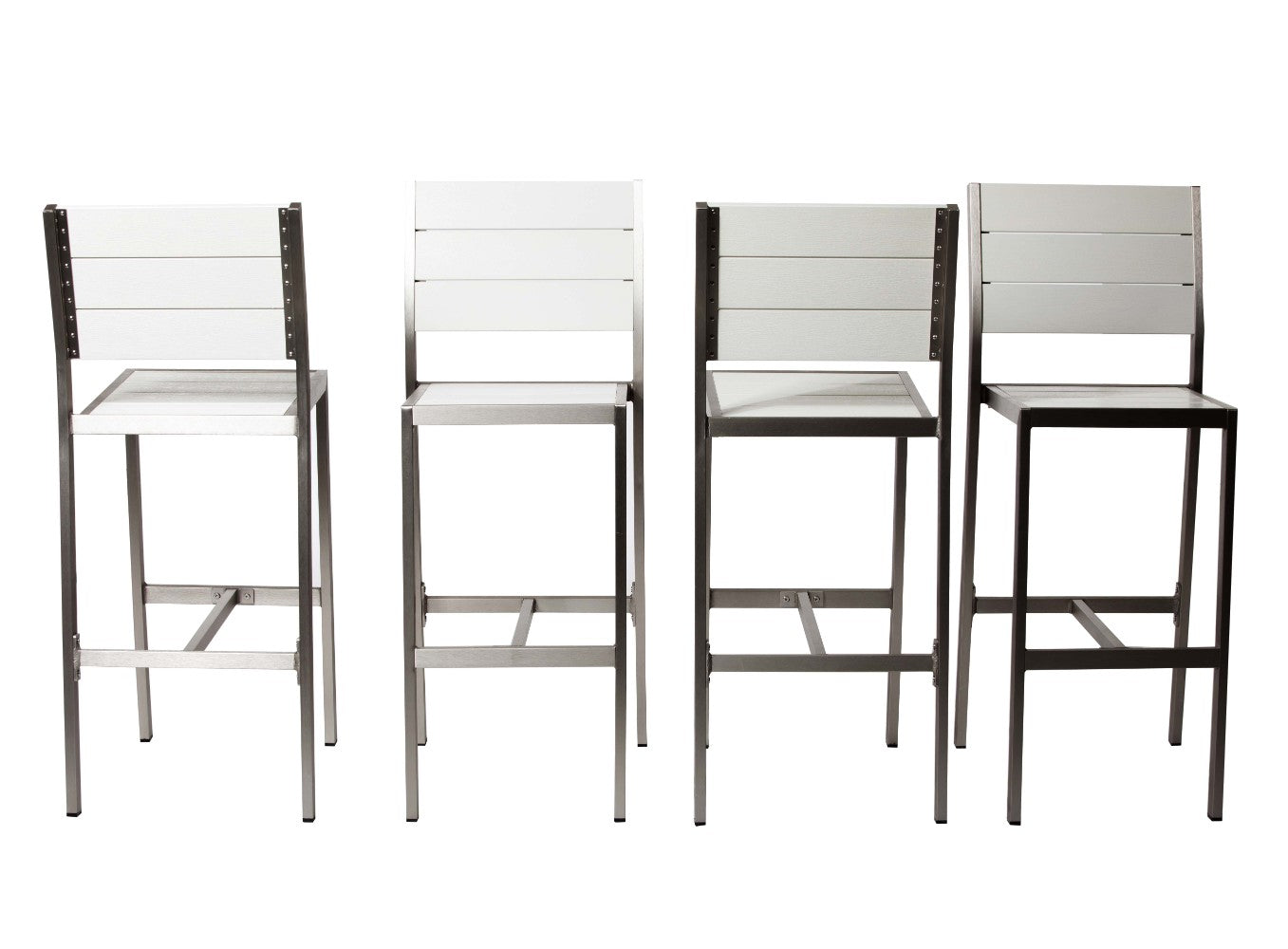 Benzara Catchy and Heighted Anodized Aluminum Armless Bar Stools in White (Set of 4)