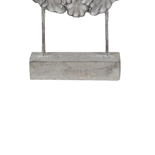 Benzara Cement and Metal Floral Sculpture with Block Base, Small, Gray