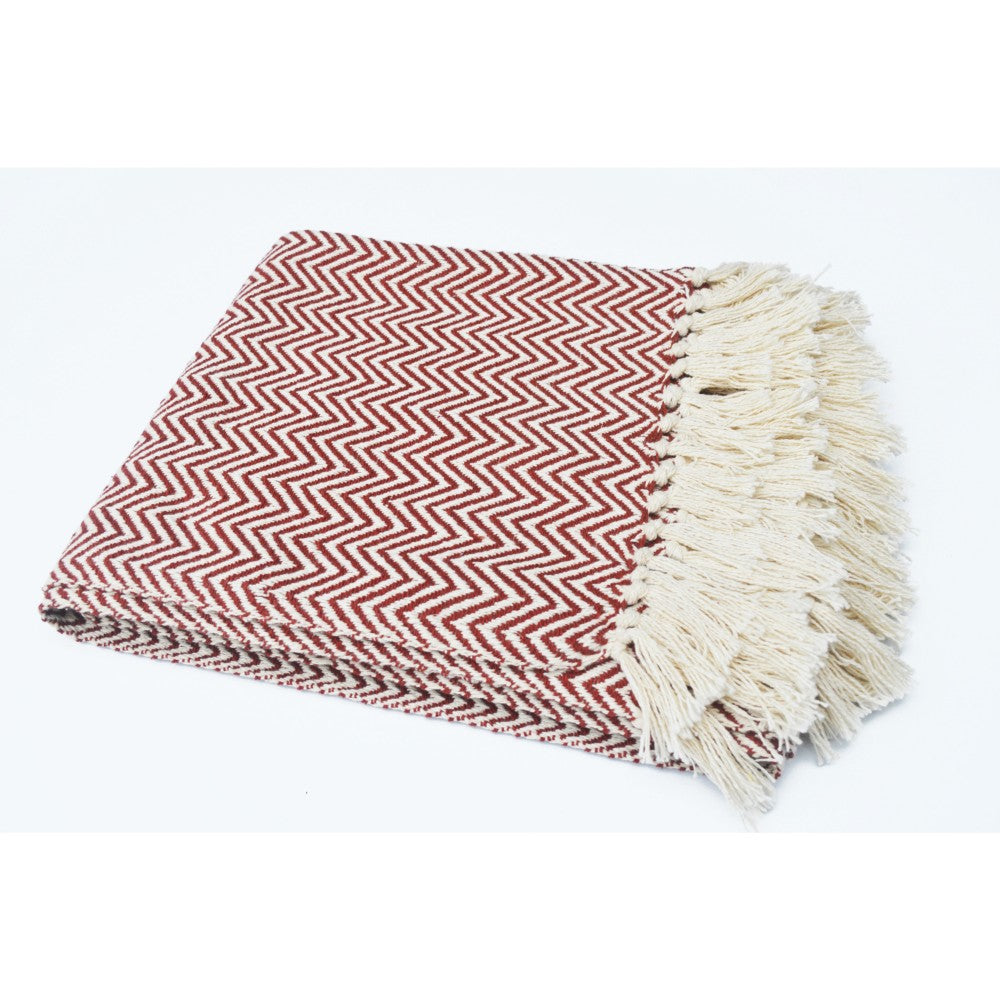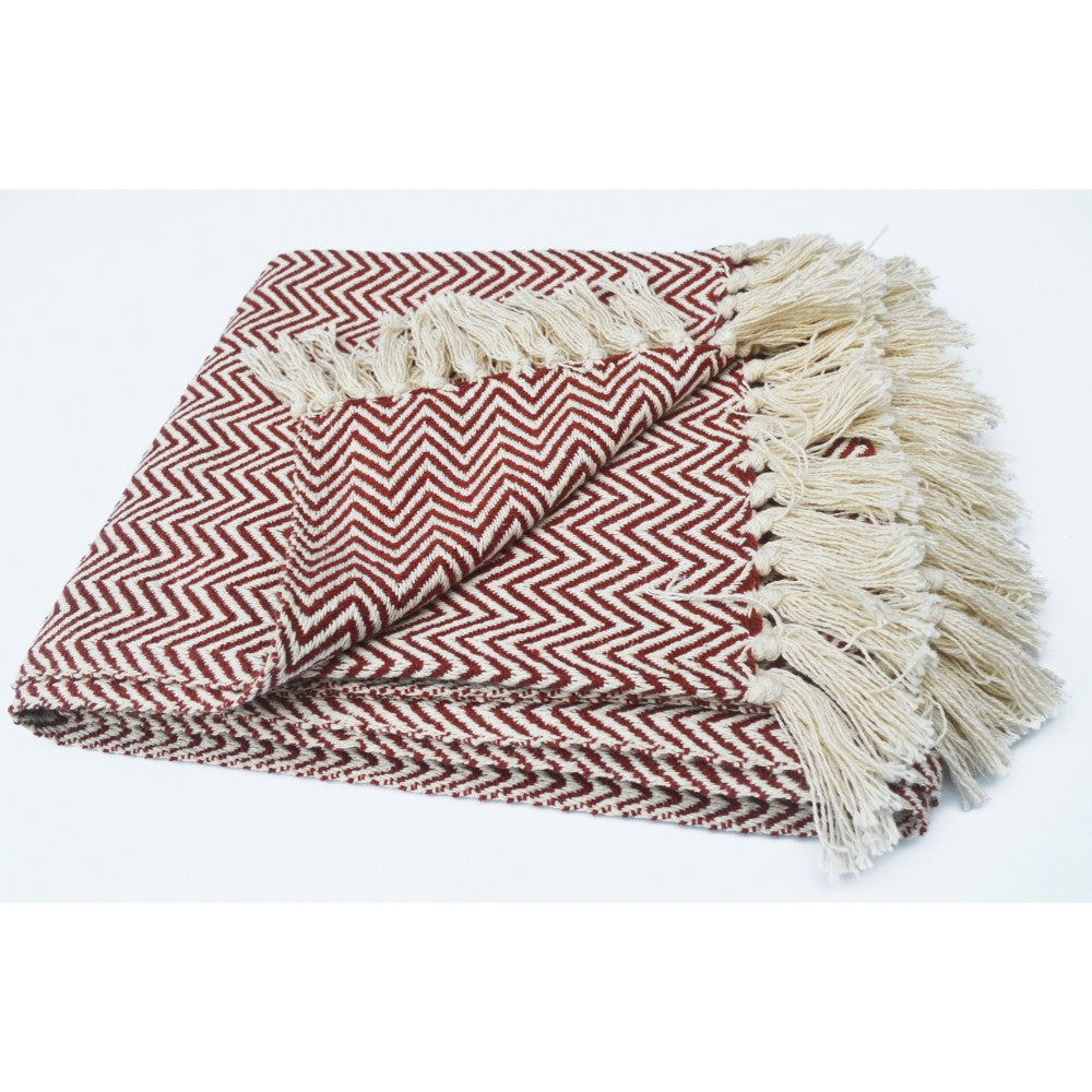 Benzara Chevron Patterned Cotton Throw, Rust and Ivory
