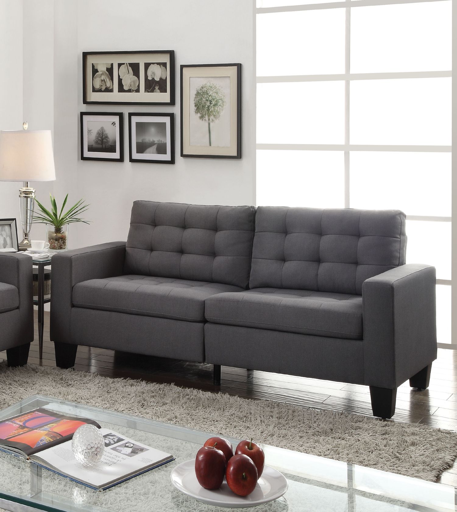 Benzara Dashing Sofa in Gray Linen Fabric