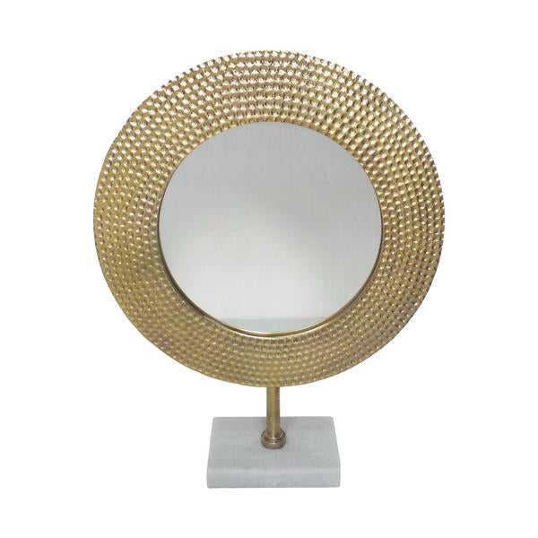 SKU - BZBM220979Hammered Metal Frame Round Standing Mirror with Block Base Only at Uber Bazaar