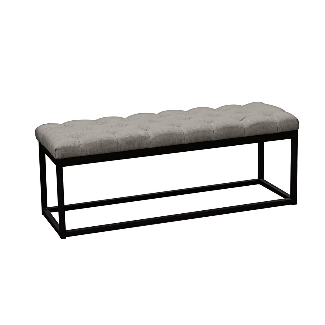 Keep extra seating on hand for surprise visitors at meal time with this Contemporary Bench. The minimalistic design allows this bench to blend easily with a wide array of Decor and color schemes, while the sturdy metal construction brings exceptional durability and longevity to this elegant piece. Featuring a linen upholstered padded seat with button tuft details, this bench offers ample support during any occasion. Use this bench as dining seat on the longer sides of your table or as an accent piece in your living room or entryway.
